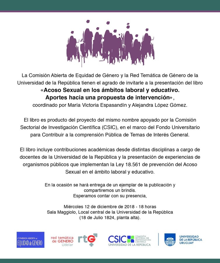 Presentación del libro: «Acoso sexual en los ámbitos laboral y educativo. Aportes hacia una propuesta de intervención» |