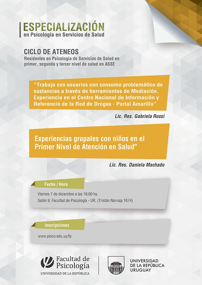CICLO DE ATENEOS Residentes en Psicología de Servicios de Salud en primer, segundo y tercer nivel de salud en ASSE |
