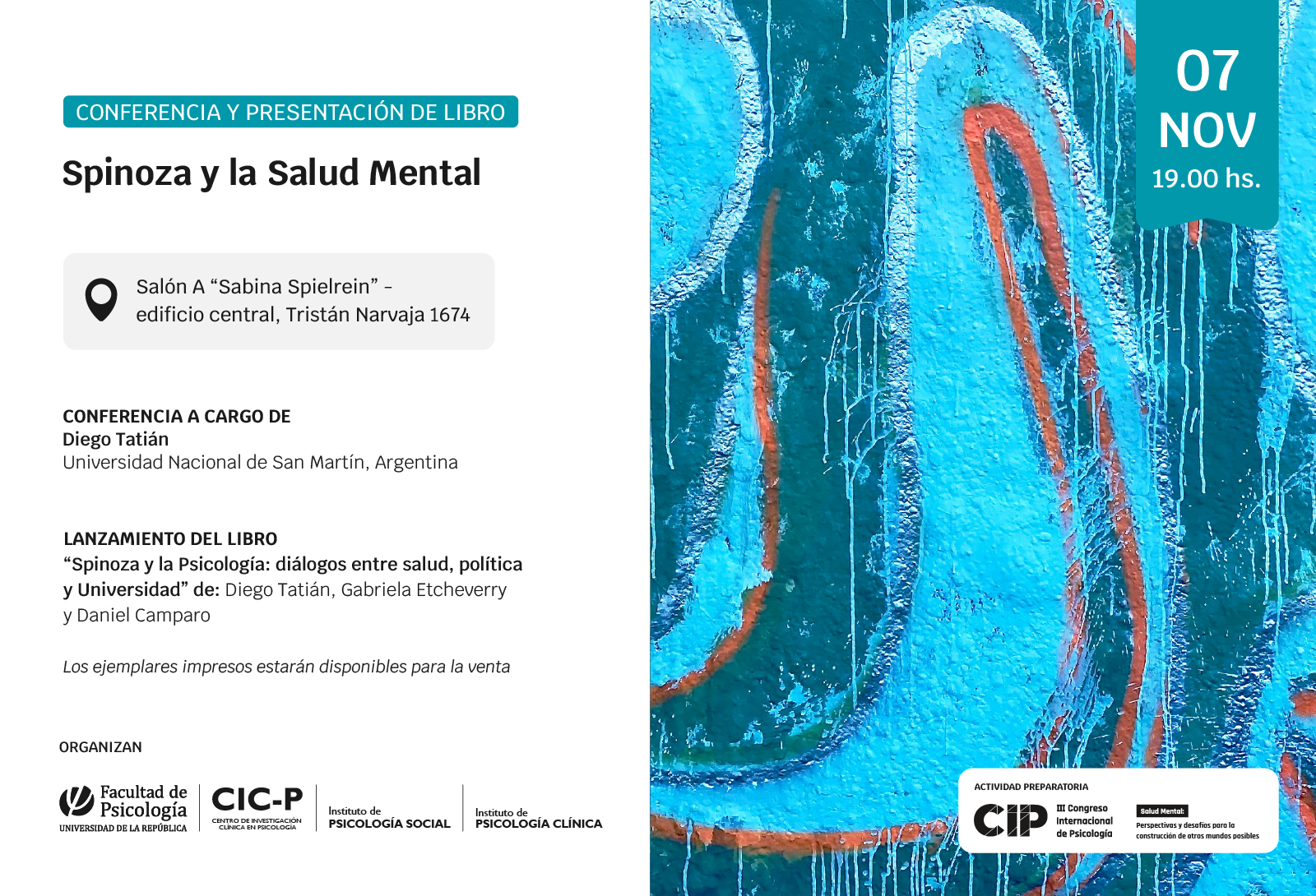 Luego, Diego Tatián, Gabriela Etcheverry y Daniel Camparo presentarán el libro “Spinoza y la Psicología: diálogos entre salud, política y Universidad”. Los ejemplares impresos estarán disponibles para la venta.