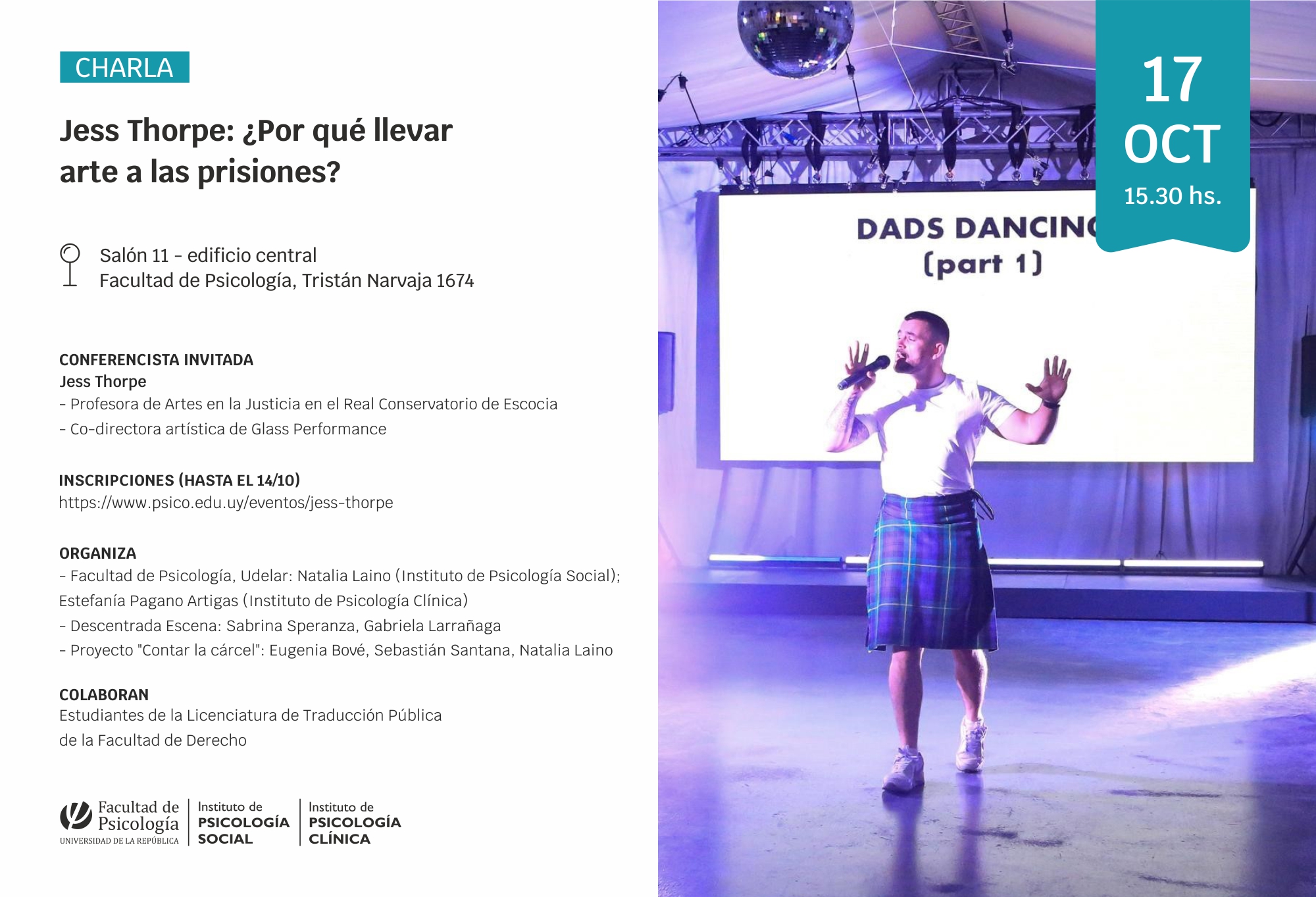 La charla tendrá lugar el viernes 17 de octubre, de 15:30 a 17:30 horas, en el Salón 11 del edificio central de la Facultad de Psicología (Tristán Narvaja 1674).