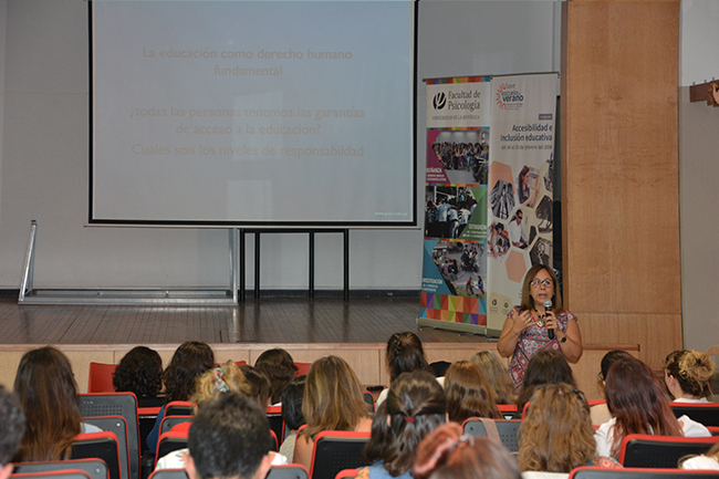 También se destaca la participación de las docentes extranjeras invitadas; la Prof. Sandra Katz (Universidad Nacional de La Plata, Argentina), quien participó de la Actividad de apertura titulada “Los Desafíos de la inclusión”; y las docentes de Universidad Estadual Paulista, Campus de Marília (Brasil), Prof. Sandra Eli Martins y Prof. Rosimar Bortolini, con sus paneles “Inclusión en Enseñanza Superior” y “El sistema educativo inclusivo y las Adecuaciones curriculares”, respectivamente.
