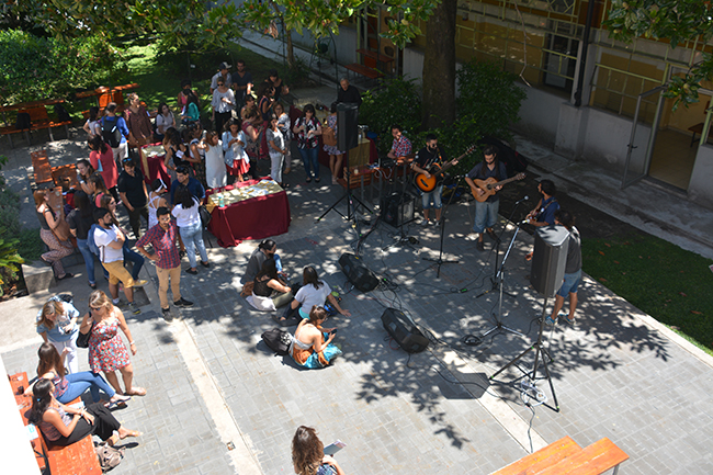 La novena edición de la Escuela de Verano de la Facultad de Psicología culminó con una celebración en el patio de la Facultad. El brindis entre los participantes fué acompañado por la presentación en vivo de la banda Milongas Extremas.
