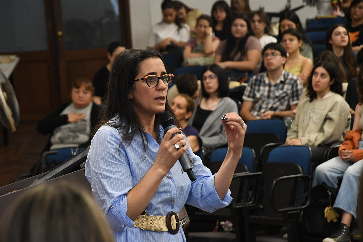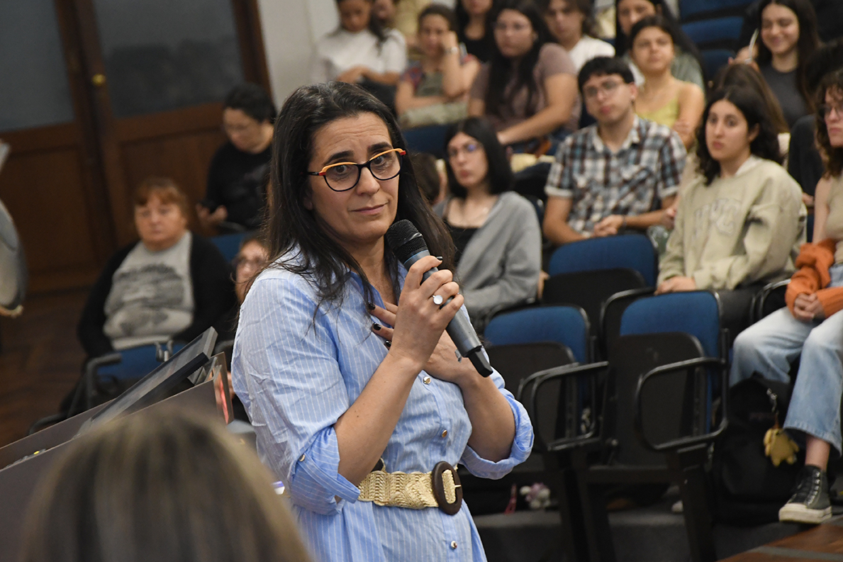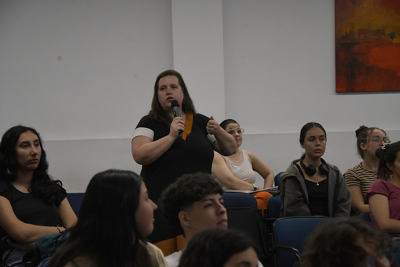 Por su parte, la representante del orden estudiantil en la Comisión, Alana Lorenzo, explicó la estructura cogobernada de la Facultad y el rol de las comisiones en la gestión de temas como la violencia y la discriminación. Invitó, además, a la participación estudiantil como una forma de construir espacios más inclusivos.