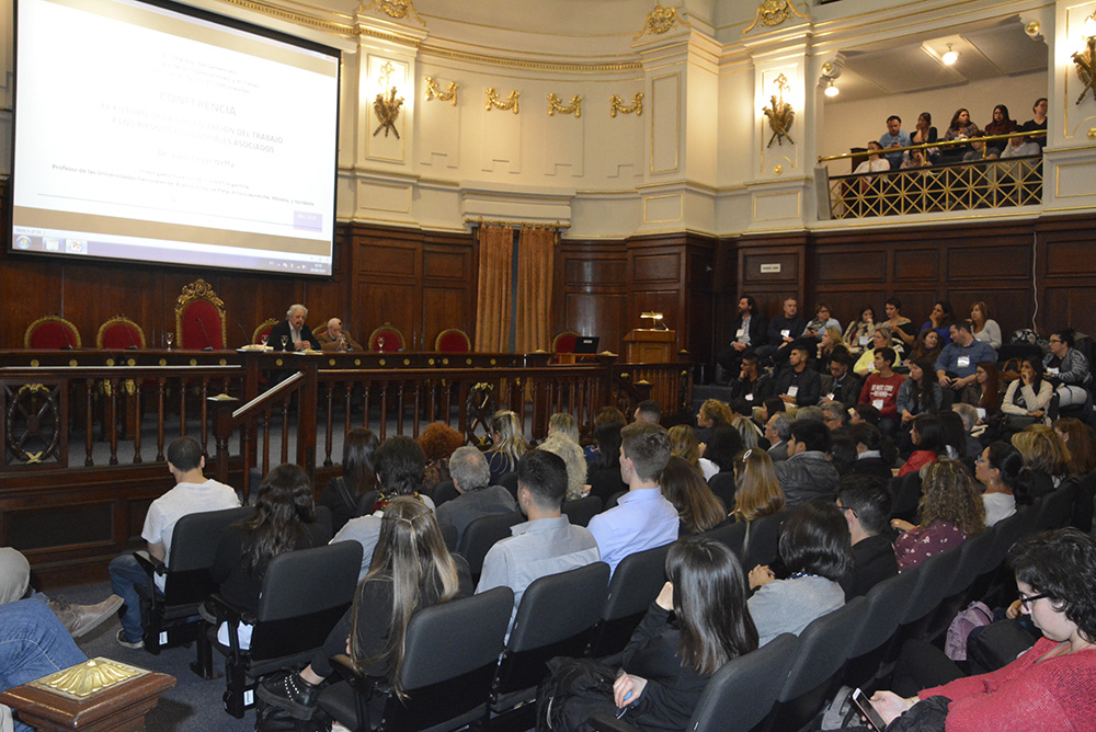 El Dr. Neffa realizó un análisis sobre cómo estos cambios han intensificado la labor de Psicología de las Organizaciones y el Trabajo, aportando materia prima para avanzar en el estudio de la temática, con énfasis en los riesgos psicosociales en el ámbito laboral.