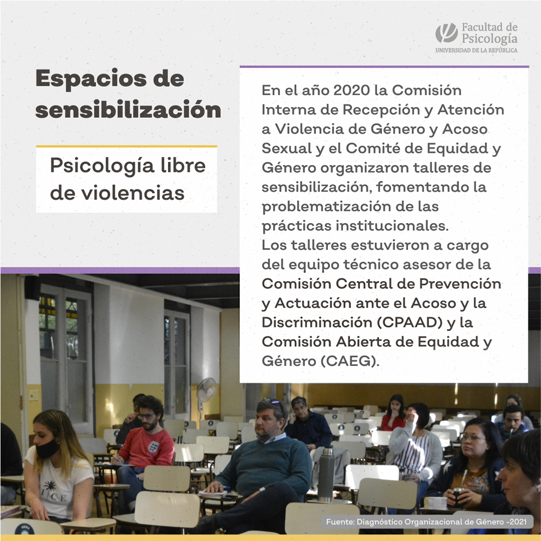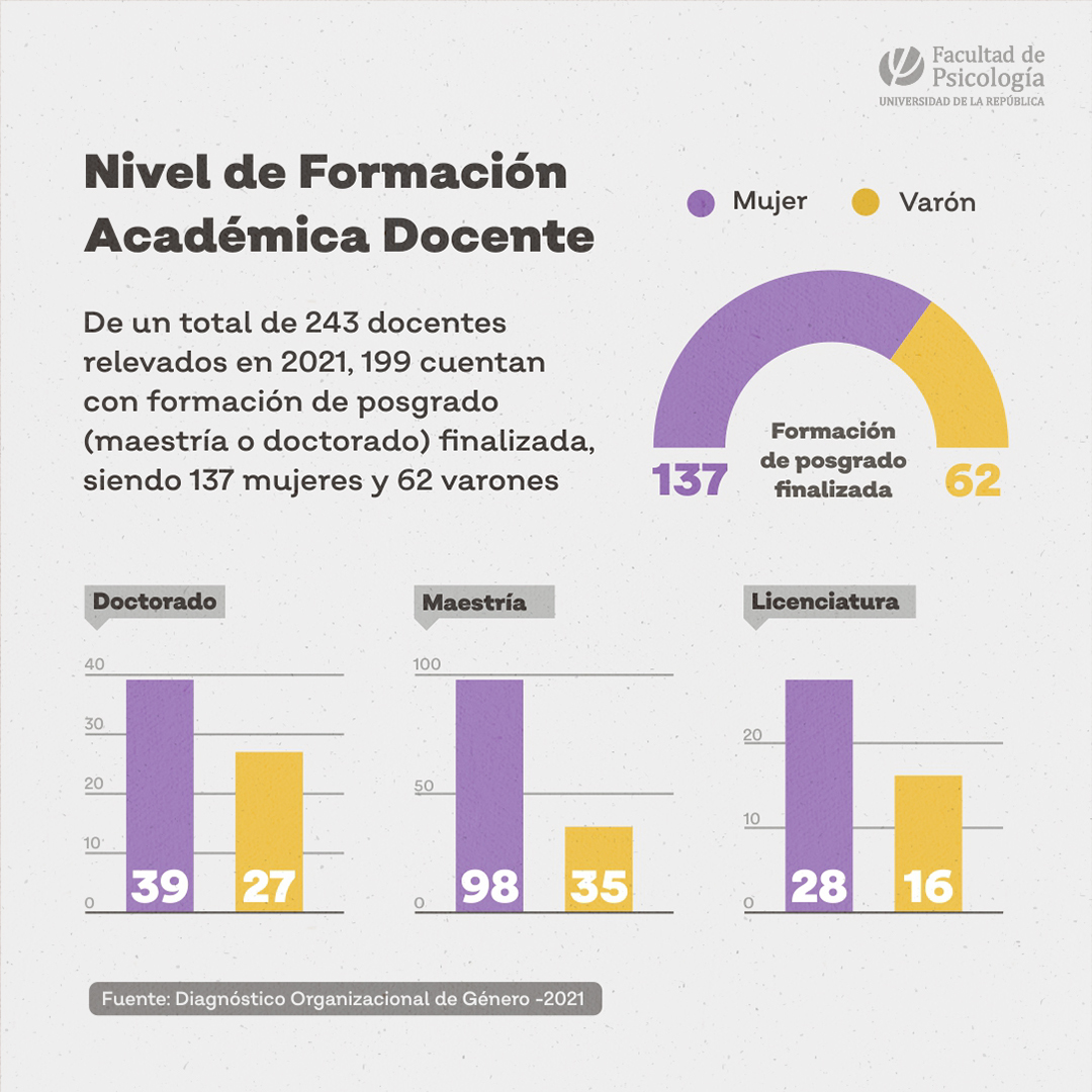 El Comité de Equidad y Género, órgano asesor cogobernado de la Facultad de Psicología de la Universidad de la República (Udelar), elaboró entre los meses de mayo a noviembre del año 2021 el proceso de actualización del Diagnóstico organizacional con perspectiva de género, aprobado por el Consejo de Facultad el día 7 de marzo de 2022.