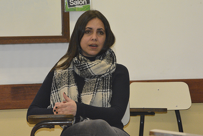 Al final de la charla la Br. Valeria Viera compartió su experiencia en un proyecto de investigación que presentó al PAIE.