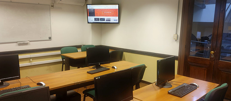 Una de ellas, de 32 pulgadas, fue instalada en la Sala de Capacitación (salón D), y cuenta con cableado y conector para que la/el docente pueda enviar imagen desde su notebook hacia la pantalla.