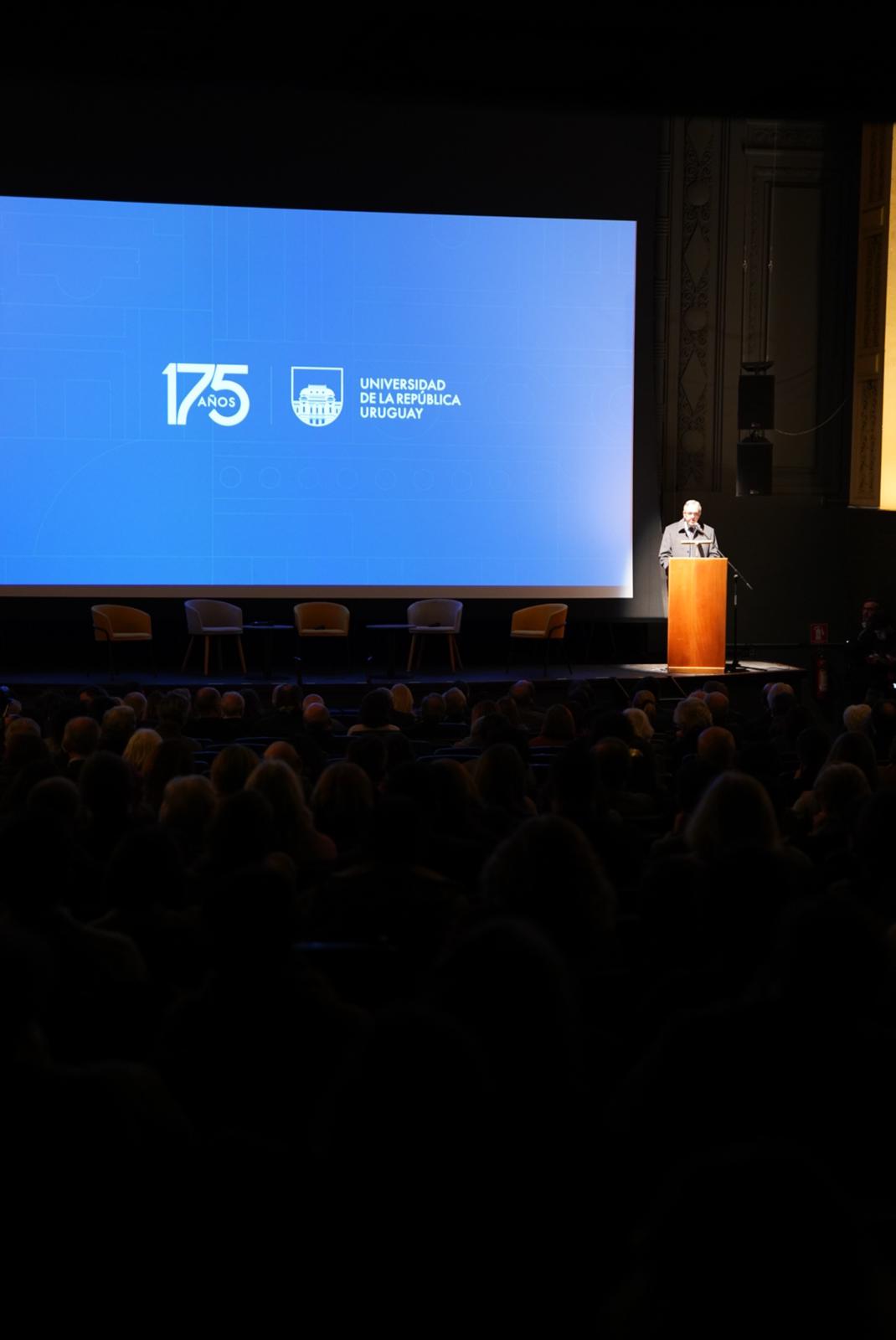 El acto, que se realizó en la Sala Zitarrosa, comenzó con la presentación de un video institucional con el que la Udelar celebra «sus 175 años en movimiento» y su rica historia enraizada en el proceso de construcción del Uruguay como nación. También destaca el camino recorrido como universidad pública latinoamericana, abierta, autónoma y cogobernada conectada con nuestra sociedad y «comprometida con el desarrollo nacional, con la innovación, con la sostenibilidad ambiental, así como con la defensa de la democracia y los derechos humanos».