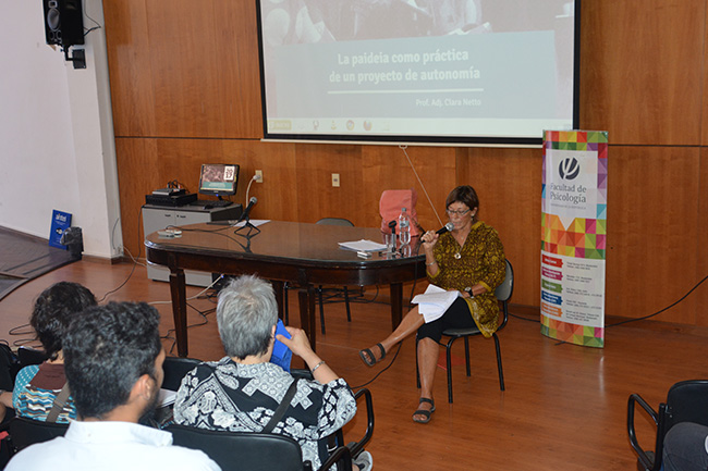 La Licenciada Clara Netto, Profesora adjunta del Instituto de Psicología Social de la UR, presentó el miércoles 28 de marzo en la Aula Magna “Juan Carlos Carrasco” de la Facultad de Psicología la conferencia inaugural