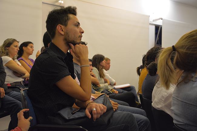 La temática de la conferencia se centró en el recorrido de las y los estudiantes por la Educación Superior en la Universidad de la República, en esta casa de estudios, y en los procesos y herramientas disponibles para la construcción de las trayectorias estudiantiles de cada uno/a. La docente introdujo los procesos referidos al ingreso a la carrera y explicó que el objeto de estudio de su disertación serían las trayectorias estudiantiles desde un enfoque sistémico.