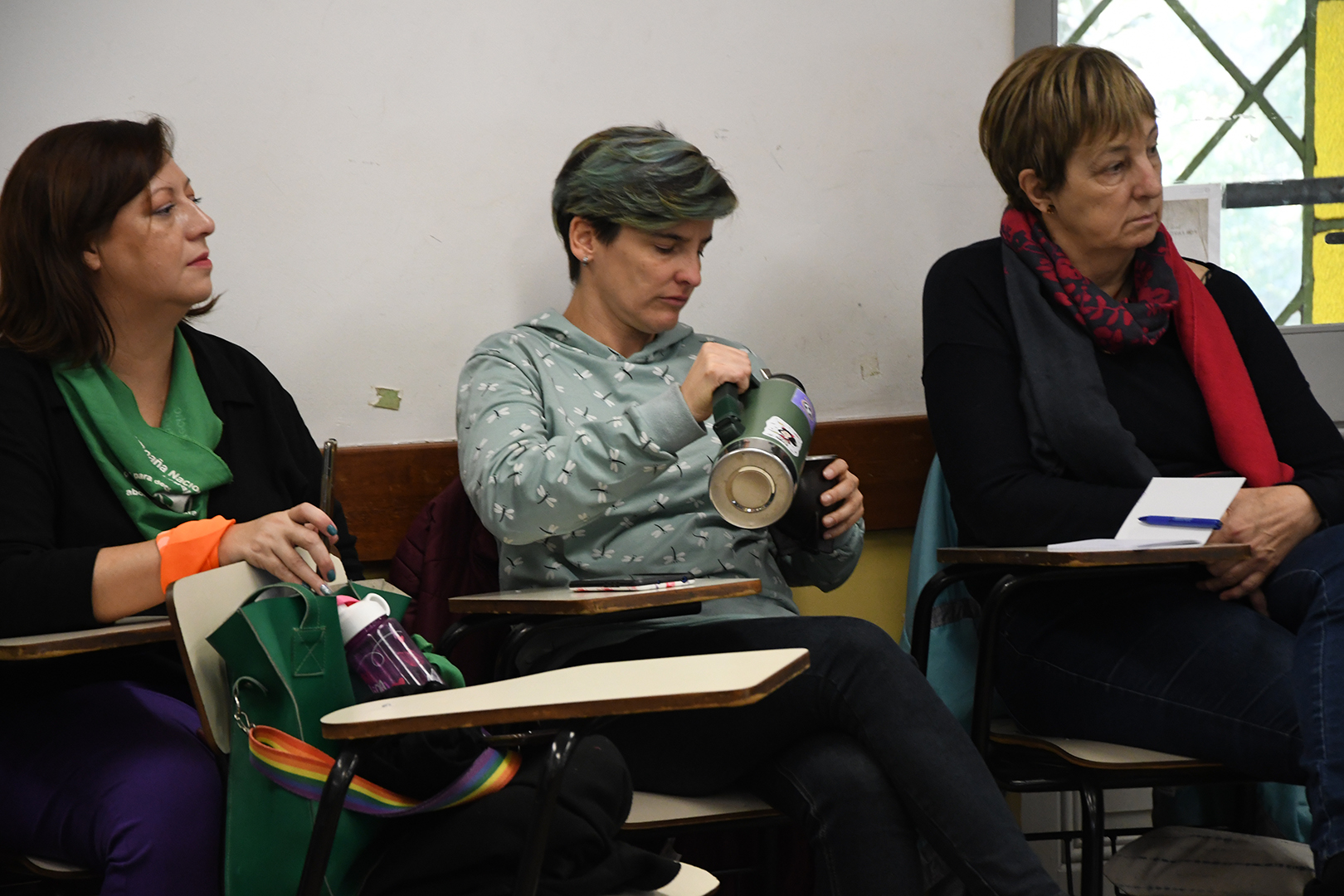 El conversatorio contó con la intervención principal de la magíster en Filosofía española, Clara Sierra, quien además es especialista en temas feministas. Además, participó la docente de la Facultad Alejandra López y la directoria de MYSU, Lilian Abracinskas.