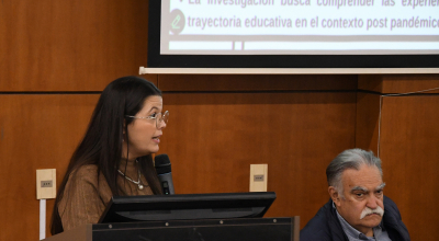 Por su parte, Quintana compartió su investigación sobre la trayectoria educativa de niños y niñas nacidos en pandemia, aún en curso. Señaló que la mayoría de estudios previos se centraban en la mirada adulta, mientras que su proyecto buscaba recoger directamente las voces de los propios niños. Relató que muchos daban cuenta de lo ocurrido: una niña decía que “cuando había pandemia no podías salir porque contagiabas a la gente, no podías jugar, no podías hacer nada”. Su enfoque cualitativo, basado en técnicas participativas, pretendía visibilizar cómo estas generaciones atravesaron el aislamiento, la pérdida de redes y las limitaciones en su derecho a la educación y al juego.