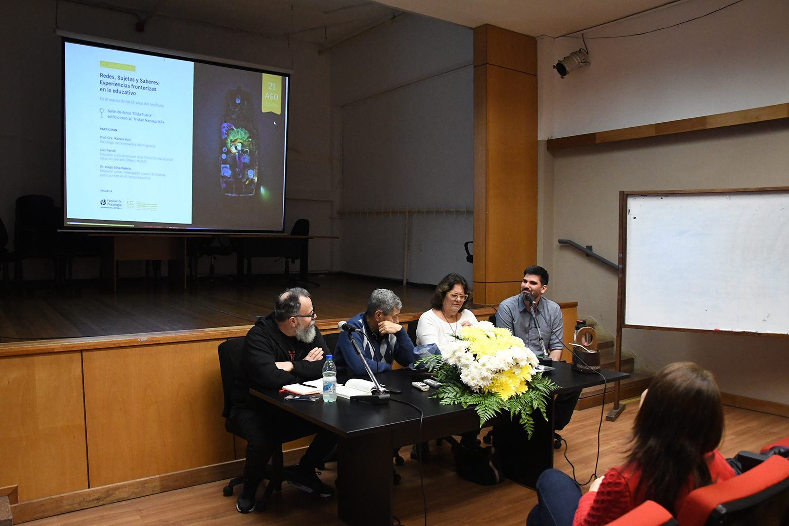 El conversatorio “Redes, Sujetos y Saberes: Experiencias fronterizas en lo educativo” reunió diversas miradas para pensar la educación más allá de sus límites tradicionales. En el marco de los 15 años del Instituto de Psicología, Educación y Desarrollo Humano, cuatro referentes compartieron reflexiones cargadas de experiencia, crítica y compromiso con los sujetos que habitan —y muchas veces resisten— en las fronteras sociales. La actividad fue presentada por el docente Marcelo Aguirre, quien recordó que la celebración también era una oportunidad para interpelar los sentidos de la educación.