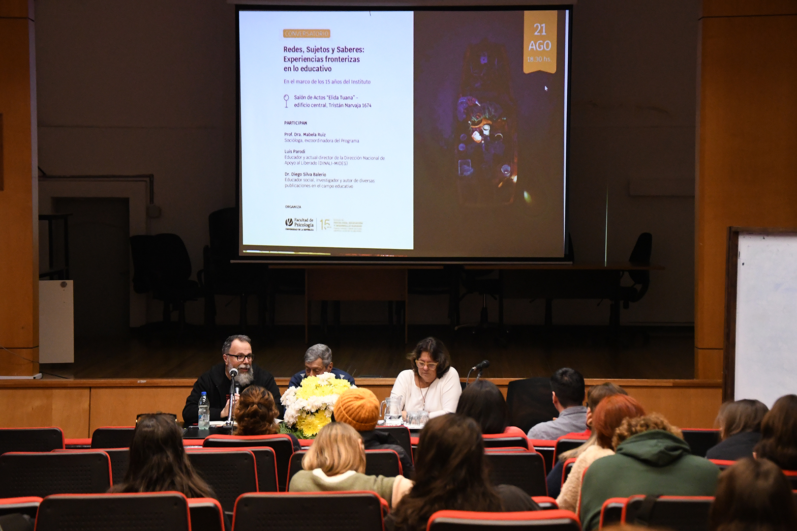 El evento se realizó en el salón de actos Élida Tuana de la Facultad de Psicología y fue transmitido en vivo a través del canal institucional de YouTube. Allí, la socióloga Mabela Ruiz, los educadores Luis Parodi y Diego Silva Balerio, y la profesora Cecilia Baroni abordaron la formación integral como articulación entre saberes, disciplinas y funciones universitarias, así como la relación del sujeto con el conocimiento.