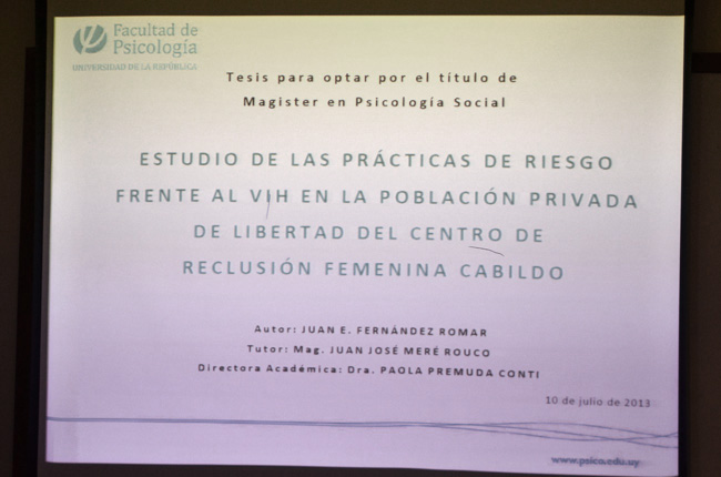 El 10 Julio se llevó a cabo la Defensa de Tesis del Maestrando Juan Fernández Romar, titulada: "Estudio de las prácticas de riesgo frente al VIH en la población privada de libertad del Centro de Reclusión Femenina Cabildo".