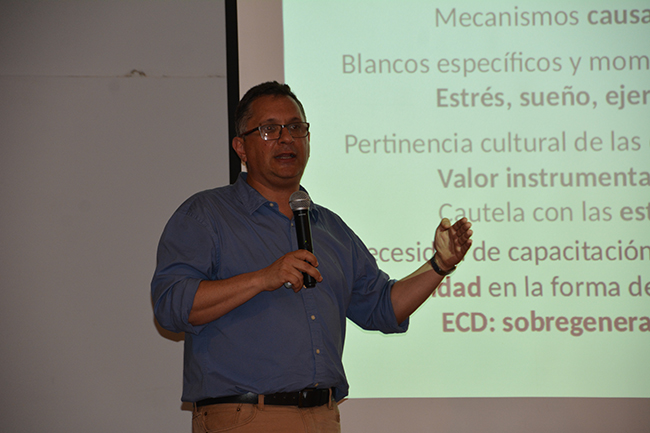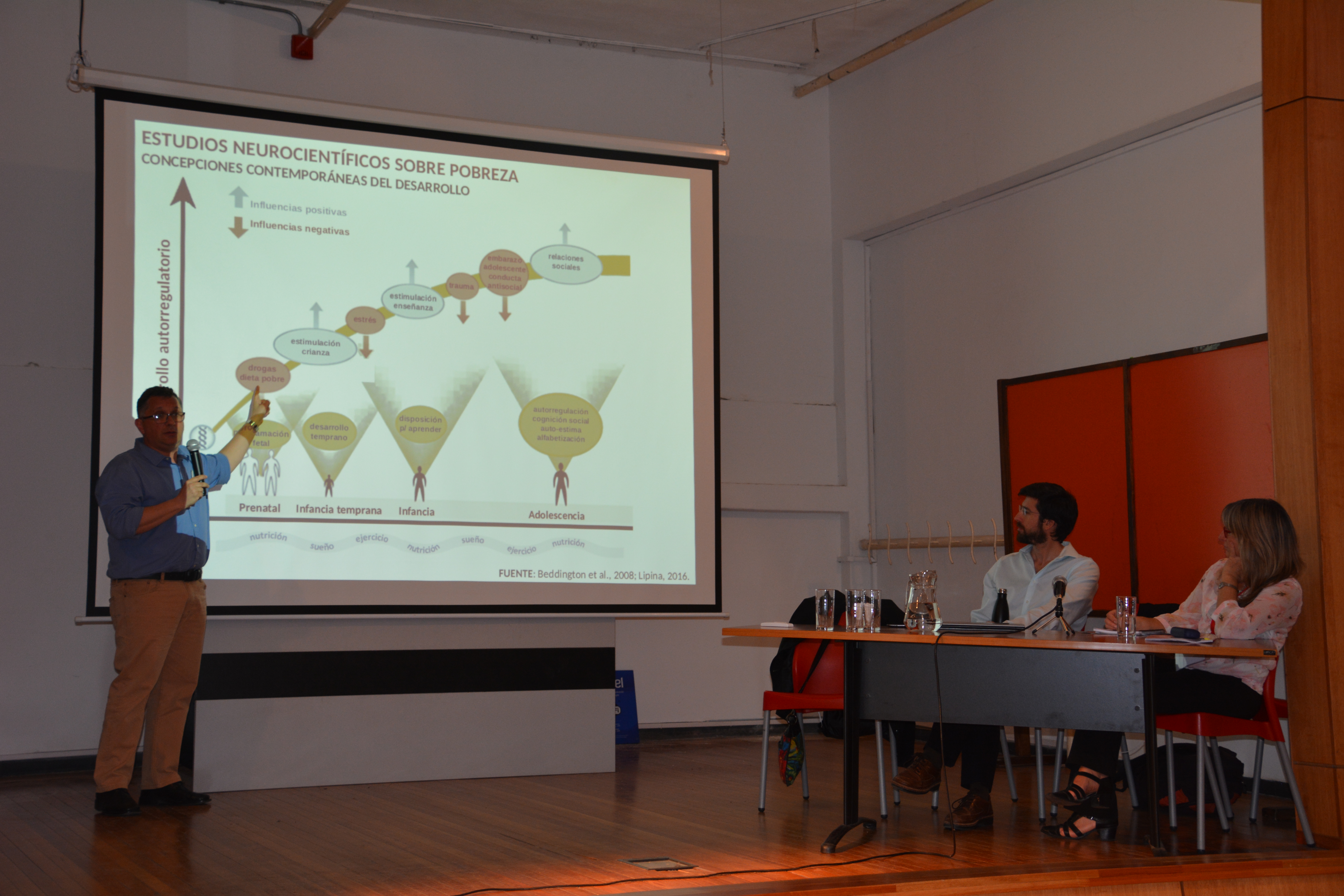 Sebastián Lipina ofreció una síntesis de la evidencia contemporánea de los estudios neurocientíficos de la pobreza infantil, en términos de las asociaciones identificadas entre diferentes formas de pobreza y cambios en el sistema nervioso, la mediación de tales asociaciones por factores individuales y contextuales asociados a la respuesta regulatoria del estrés, la susceptibilidad individual a los ambientes, la co-ocurrencia de diferentes tipos de adversidades, la calidad de los ambientes de crianza y educación temprana.