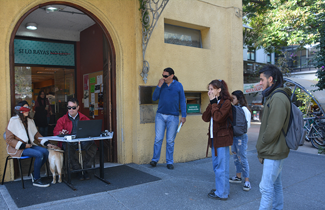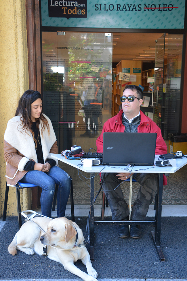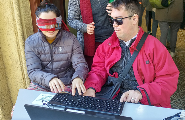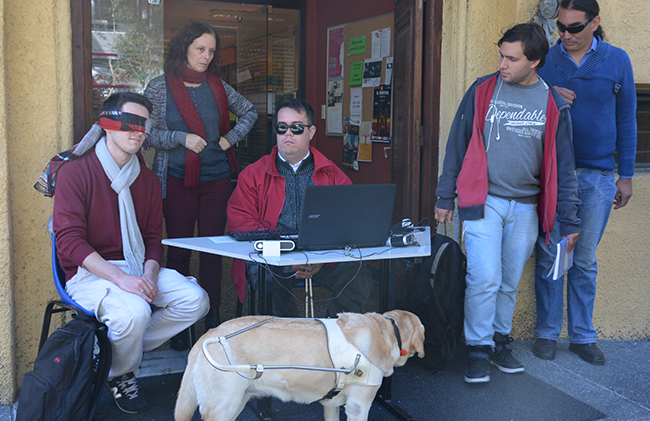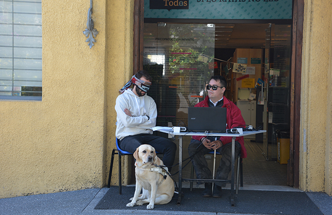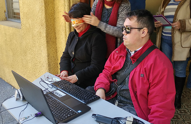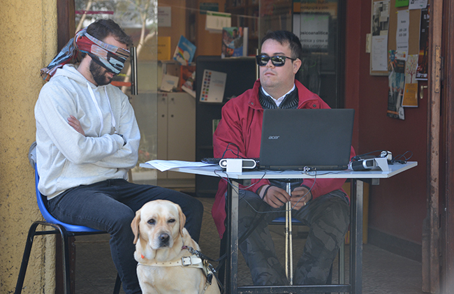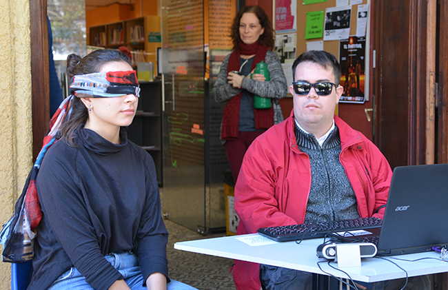 El Lic. Mauro Sghezzi –egresado de la Licenciatura en Psicología– y Fabián Pérez –funcionario técnico administrativo de la Facultad– fueron los encargados de llevar adelante la actividad. Quienes participaron, al simular situación de discapacidad visual con sus ojos vendados, experimentaron lo que resulta de escanear páginas rayadas y páginas en buenas condiciones que luego son reconocidas por los programas lectores de pantalla utilizados por las personas con esta discapacidad. En las partes subrayadas, tachadas o marcadas, la lectura era absolutamente irreconocible. Con unas pocas palabras no identificadas por el software la comprensión del texto se tornaba imposible.