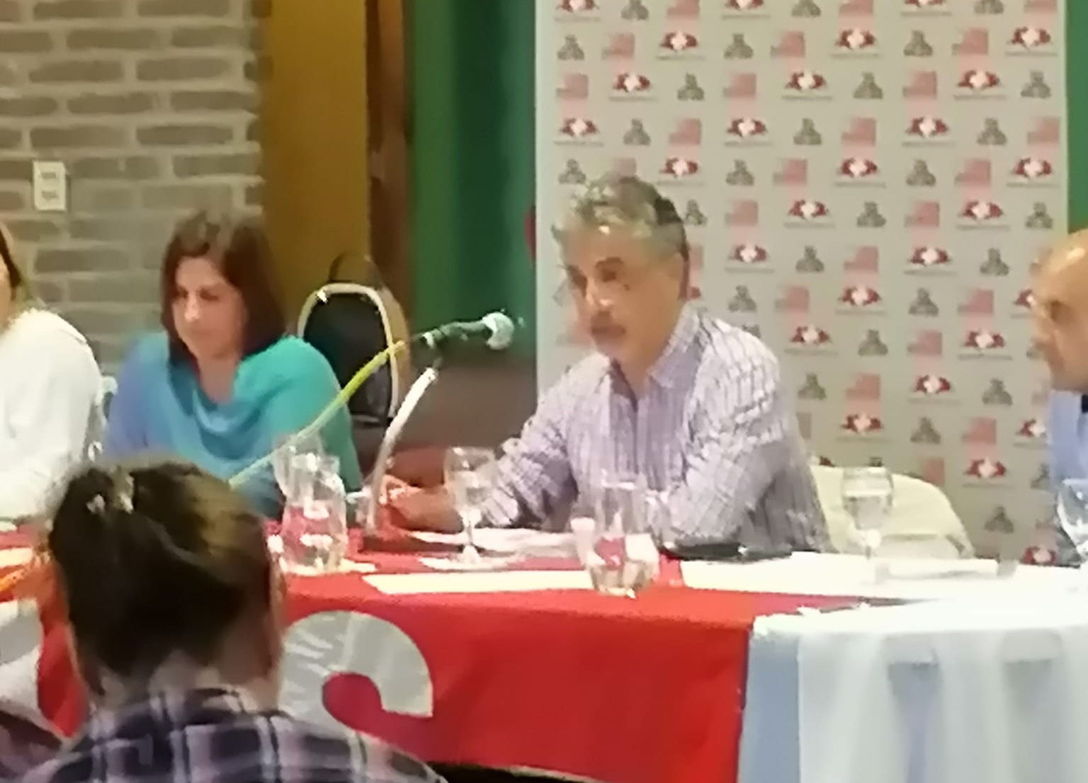 Su planteo abordó la pregunta: ¿por qué un sindicato tendría que ocuparse de la salud mental de los trabajadores?. Destacó la importancia de pensar la salud mental como una dimensión inseparable del concepto integral de salud. Recordó la importancia de los procesos de trabajo en la determinación de la salud, comprendiéndola en tanto producción social e histórica. Durante mucho tiempo, predominaron concepciones que tendieron a marginar los sufrimientos subjetivos s de los abordajes en salud, en la actualidad se apuesta a un cambio de modelo de atención basado en la perspectiva de derechos.
