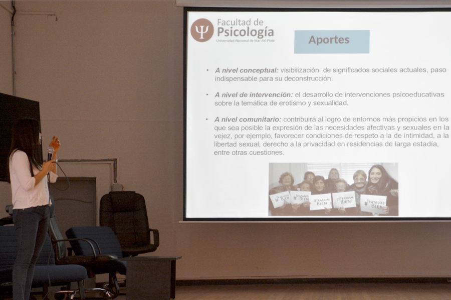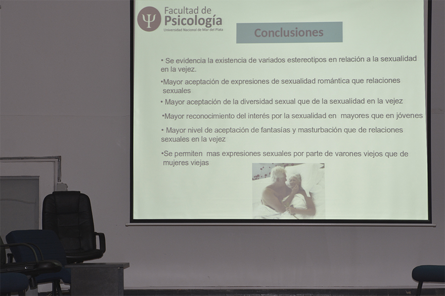 La conferencia “Significados asociados a la sexualidad en la vejez” a cargo de la Lic. Corina Soliverez, docente de la Cátedra Psicología Institucional y Comunitaria de la Facultad de Psicología de la Universidad Nacional de Mar del Plata (Argentina) se realizó el viernes 6 de octubre de 2017, en el Salón de Actos de la Facultad de Psicología de la Universidad de la República.