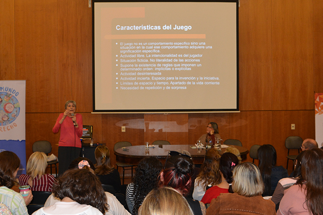 La actividad fue presentada por la Asist. Fernanda Silva, docente del Instituto de Psicología, Educación y Desarrollo Humano. Previo al inicio de la conferencia la Mtra. Esp. en Ed. Inicial, Elizabeth Ivaldi (representante de OMEP Uruguay) destacó que en el primer día de las Jornadas se puso el foco en las políticas públicas garantes de los derechos de la niñez, y el eje del segundo día de actividades se anclaria en la labor de los actores en territorio. Ivaldi introdujo los conceptos del derecho a aprender y el derecho al juego, y presentó luego la conferencista.