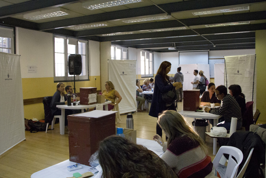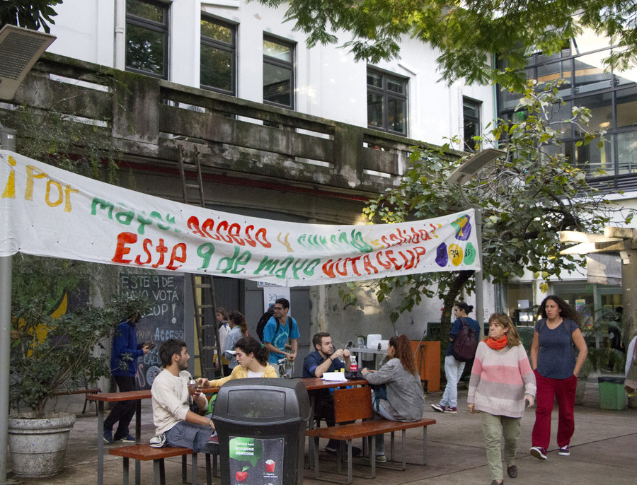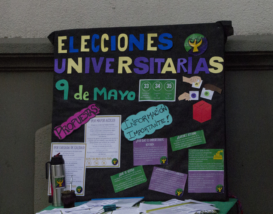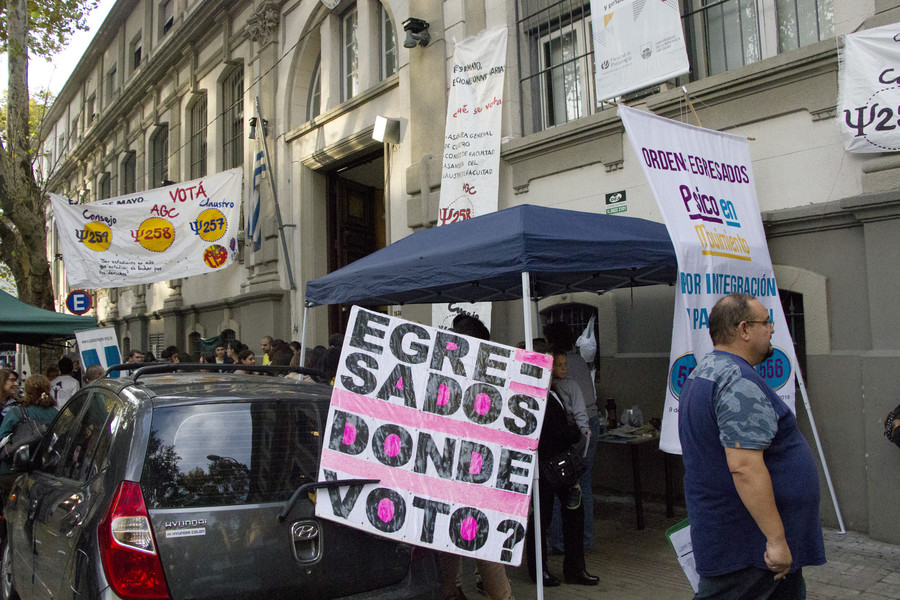 Afuera de las facultades, escuelas e institutos, las puertas estaban hoy rodeadas de carteles, mesas, stands y militantes de todos los órdenes que informaban a los votantes. En el edificio de la ex fábrica de Alpargatas votaban estudiantes de la Escuela Universitaria de Tecnología Médica, dependiente de Facultad de Medicina. Algunos estudiantes explicaron al Portal de al Udelar que iban a votar «porque es obligatorio».