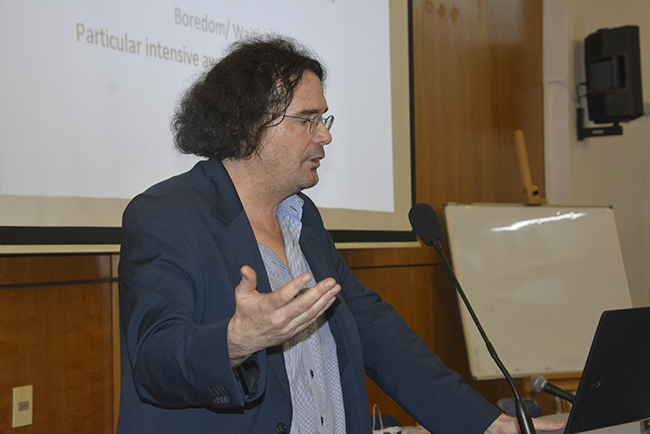 El 14 de noviembre en el Aula Magna de la Facultad de Psicología el Dr. Marc Wittmann presentó su conferencia “Altered States of Consciousness: Experiences Out of Time and Self” (Estados alterados de conciencia: Modulaciones del tiempo y del yo), en el marco de la 2da Conferencia Regional de Psicología del Tiempo.