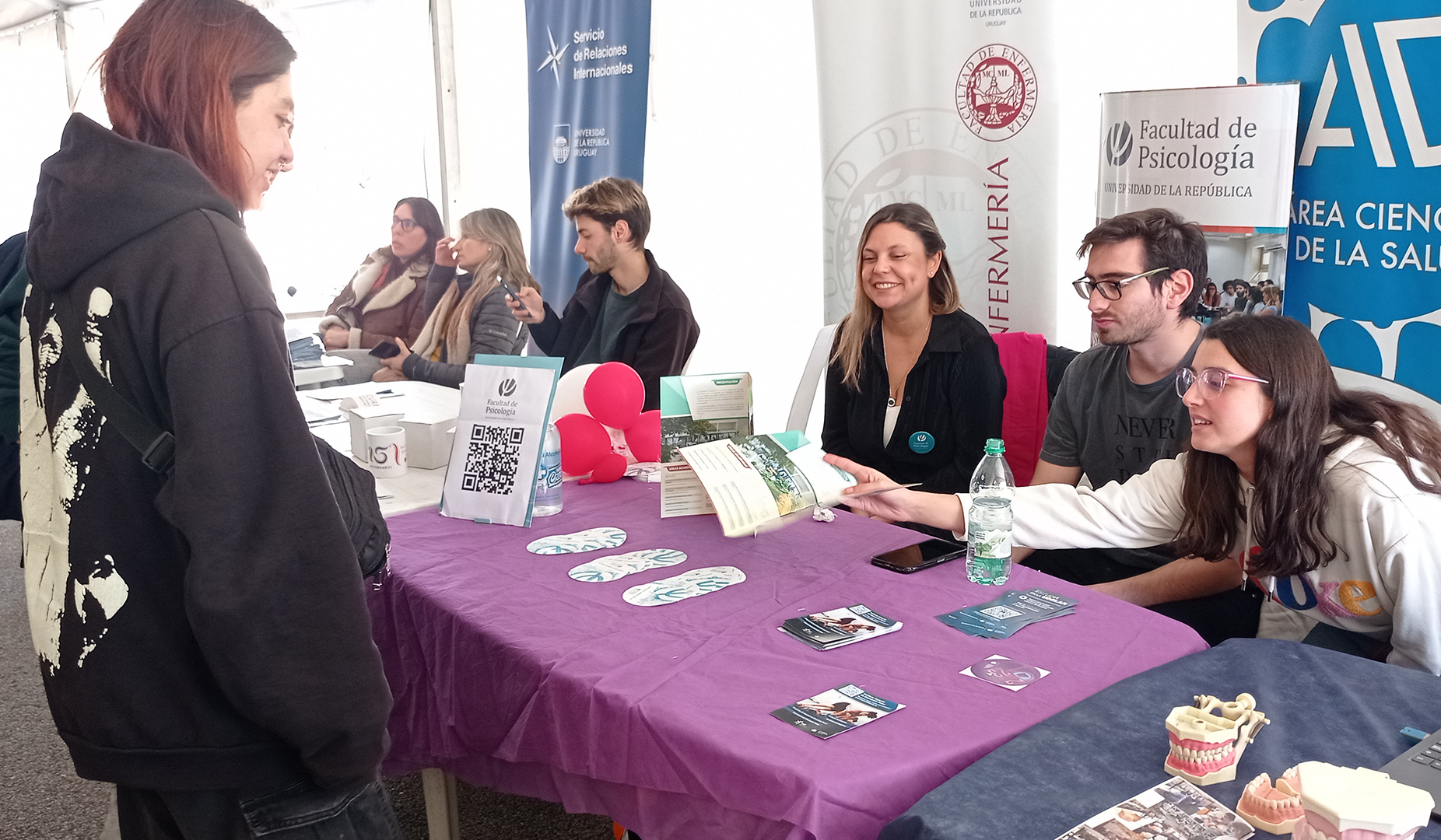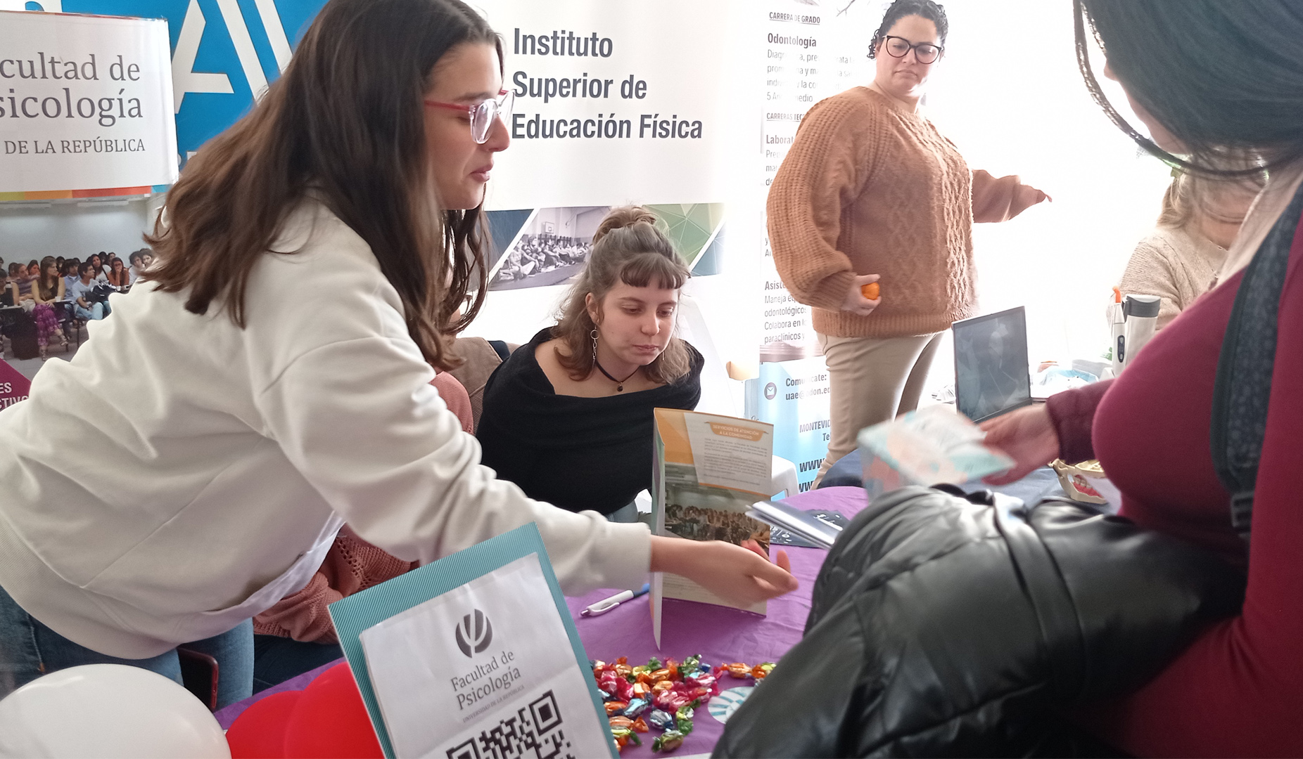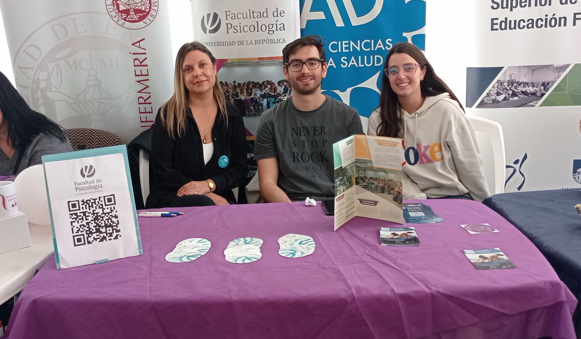En el caso de la Facultad, durante los dos días estudiantes avanzados de la Licenciatura y representantes del Programa de Renovación de la Enseñanza (Proren) atendieron al público adolescente en un stand presente en la sección destinada a los servicios del Área Ciencias de la Salud de la Udelar. Con materiales informativos, propuestas interactivas y evacuando dudas, acercaron la propuesta educativa de la licenciatura a quienes se acercaron interesados en la carrera en psicología.