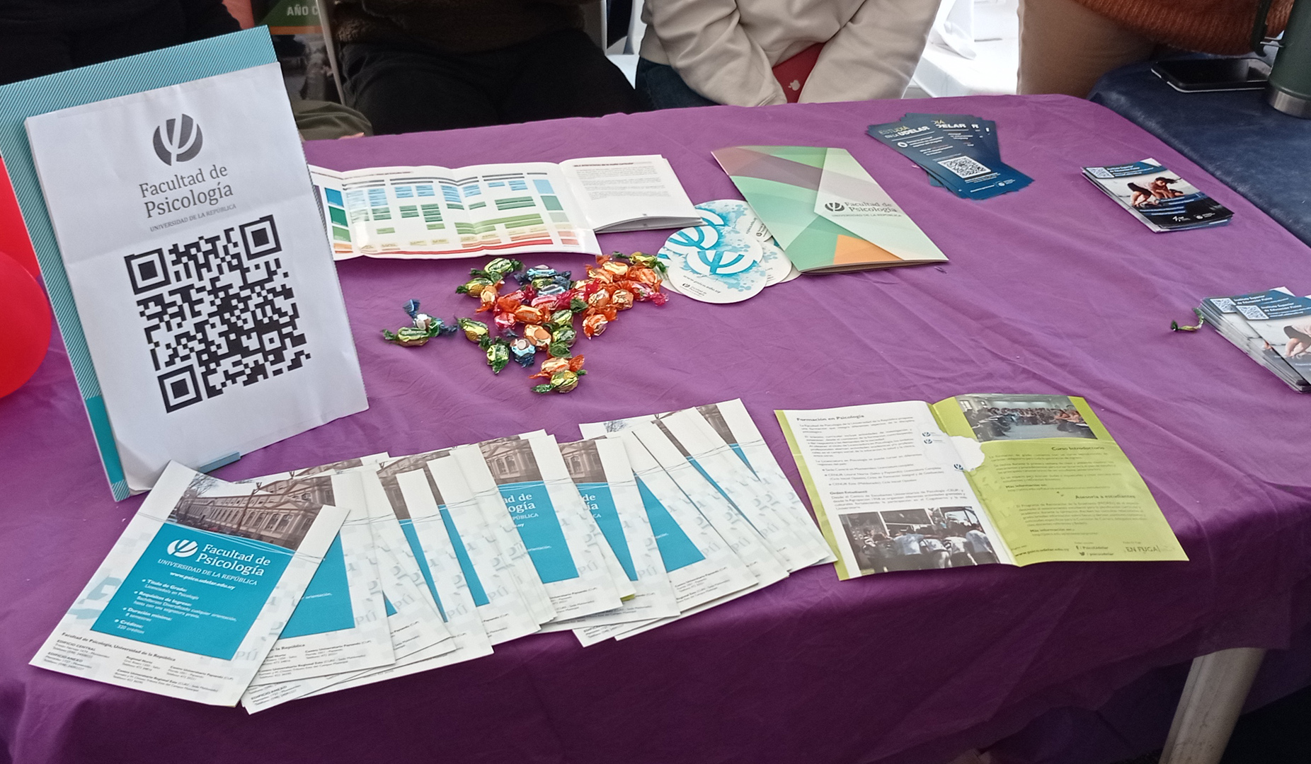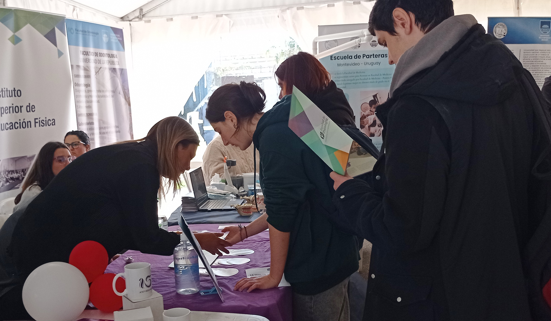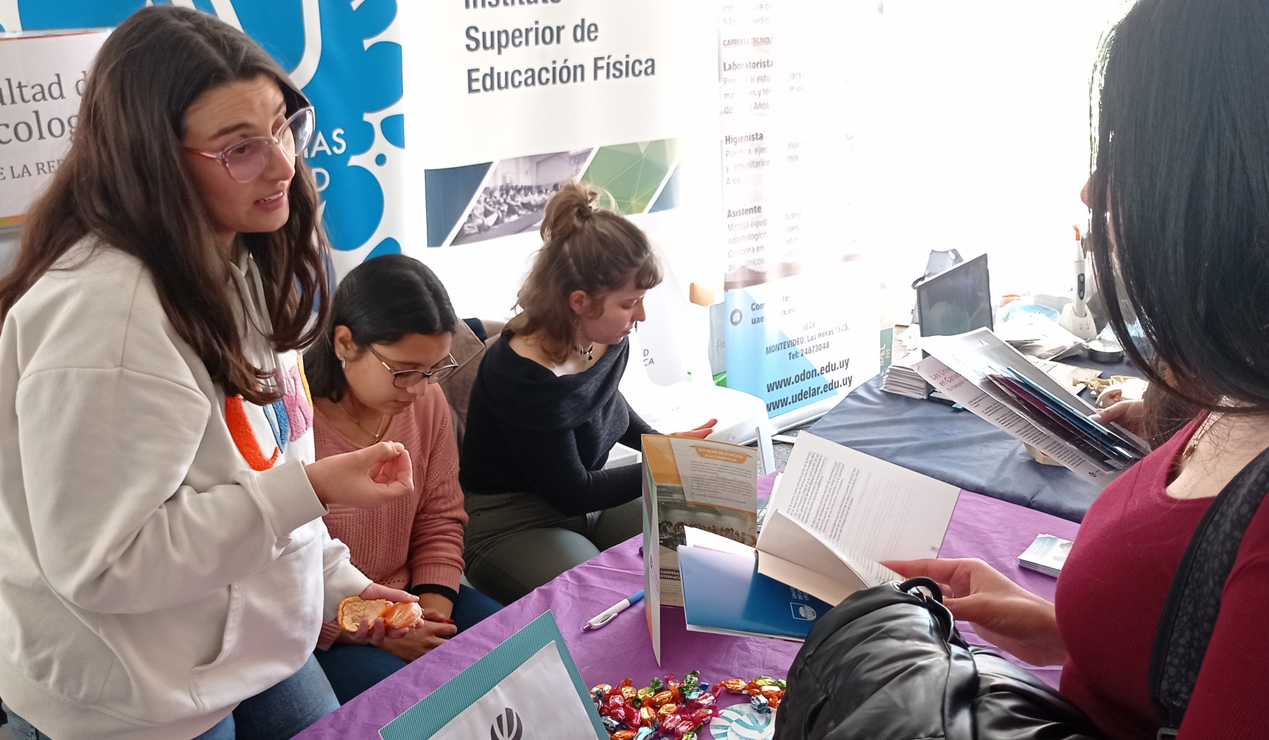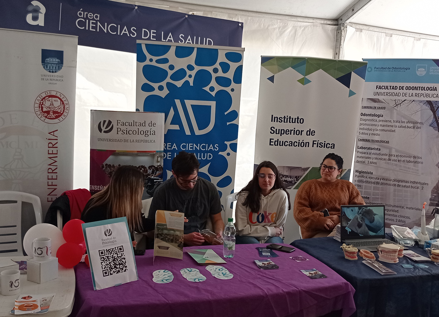 En el caso de la Facultad, durante los dos días estudiantes avanzados de la Licenciatura y representantes del Programa de Renovación de la Enseñanza (Proren) atendieron al público adolescente en un stand presente en la sección destinada a los servicios del Área Ciencias de la Salud de la Udelar. Con materiales informativos, propuestas interactivas y evacuando dudas, acercaron la propuesta educativa de la licenciatura a quienes se acercaron interesados en la carrera en psicología.