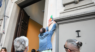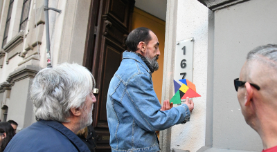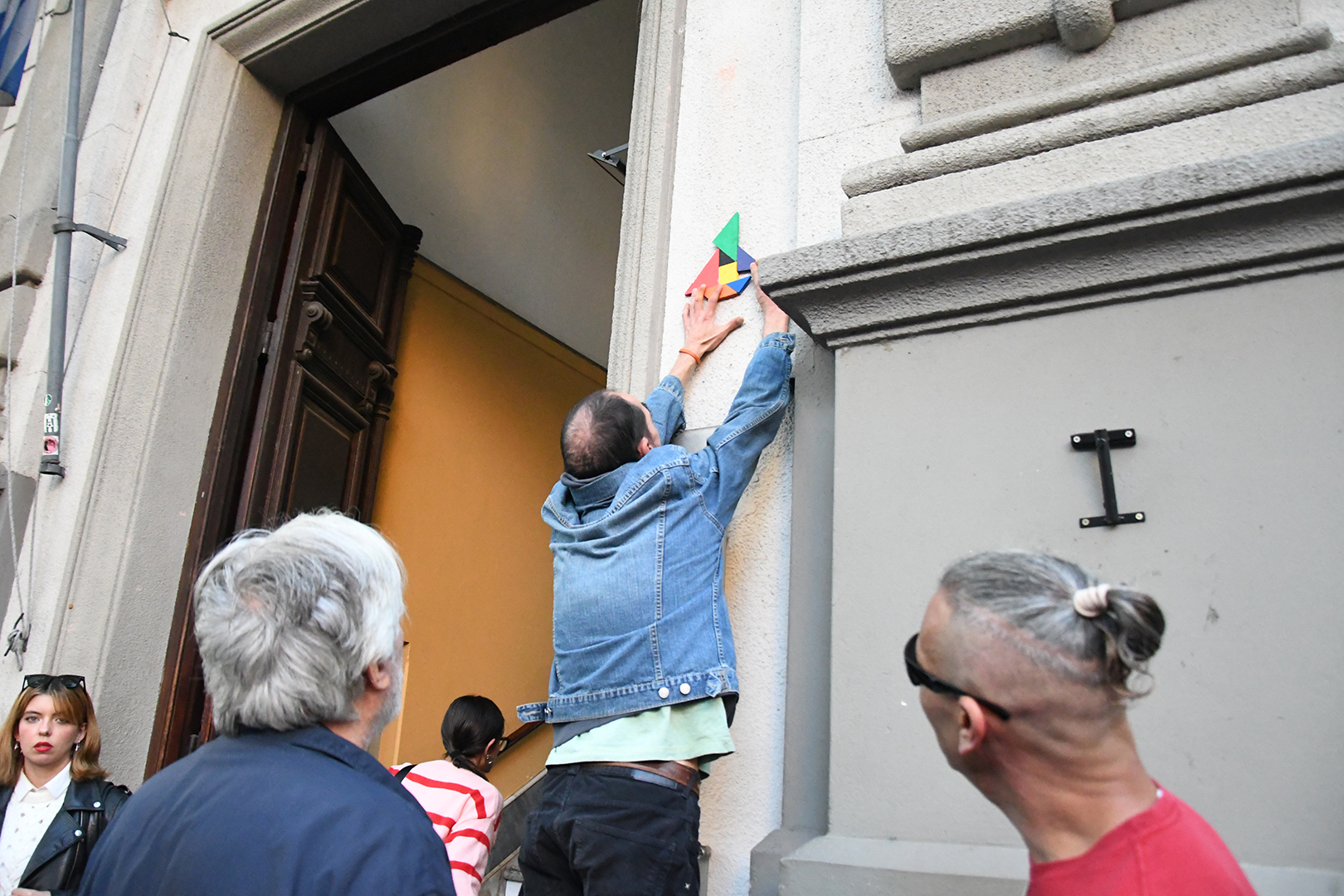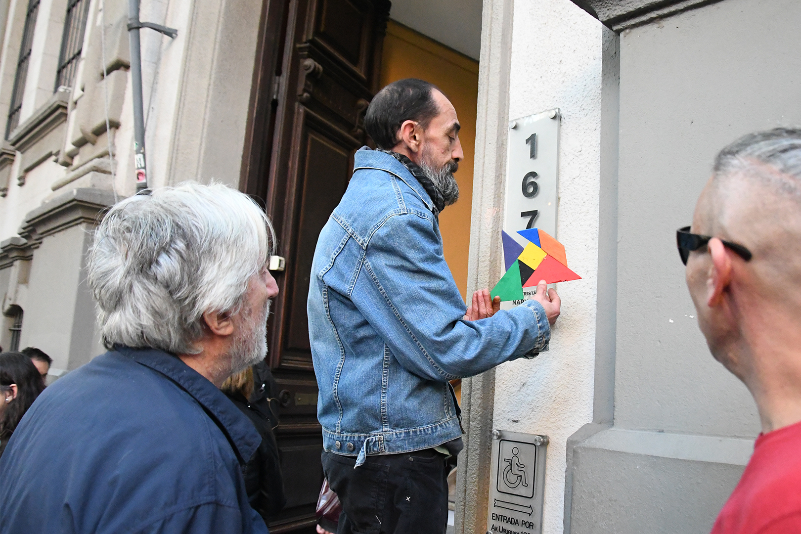 El jueves 23 de abril, a las 17:30 horas, se colocó una pieza tangram en la fachada de la Facultad de Psicología. La intervención fue realizada por la Brigada Basaglia junto al artista plástico Claudio del Puk y reconoce a la institución como un espacio amigable con la locura.