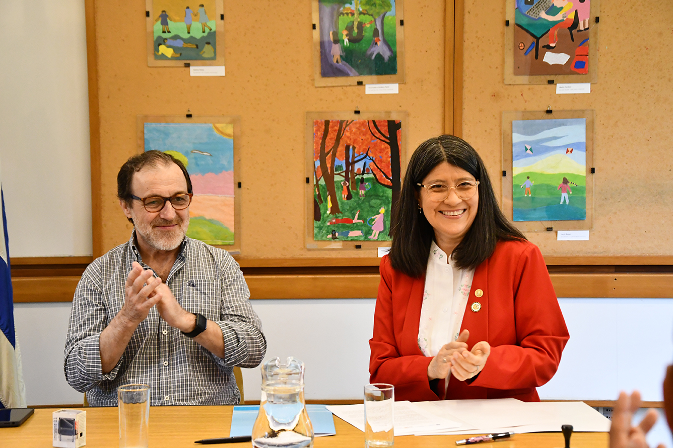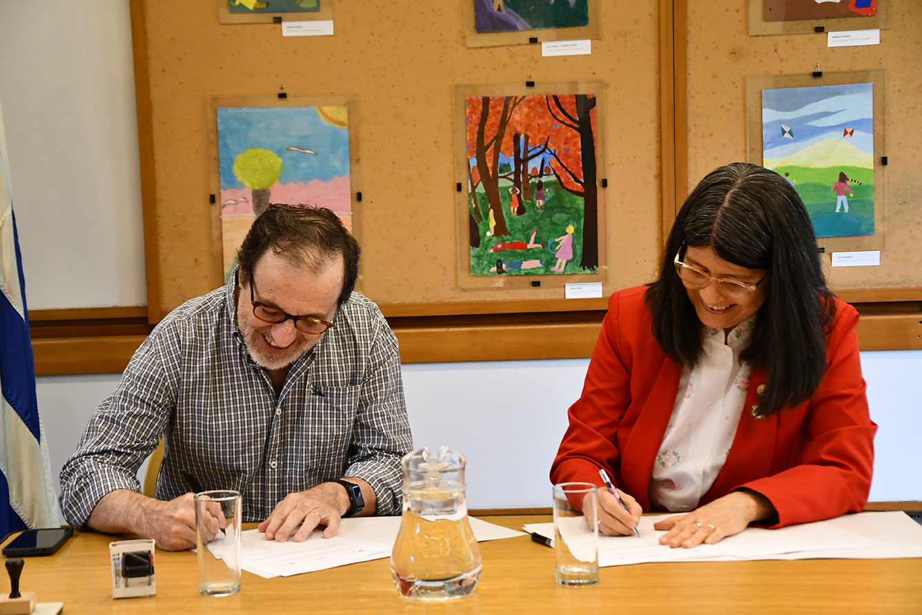 En la firma del convenio participaron María Julia Garcete (directora del IIN) y Enrico Irrazábal (decano de la Facultad de Psicología), quienes destacaron la relevancia de este convenio para avanzar en el conocimiento y la protección de los derechos de niñas, niños y adolescentes.