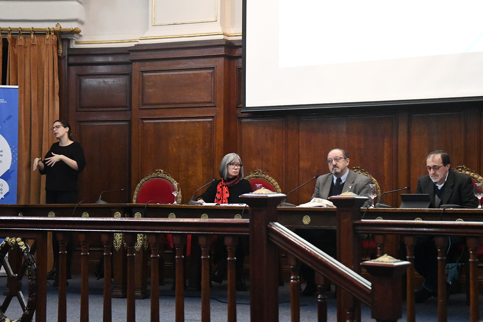 Para el cierre de la jornada las y los participantes retornaron al Paraninfo para la Conferencia central a cargo de Mary Jane Paris Spink, titulada "Culpa e responsabilidade: posições de pessoa em contextos de vulnerabilidad" y la presentación artística del Coro de Hombres Gay de Montevideo.