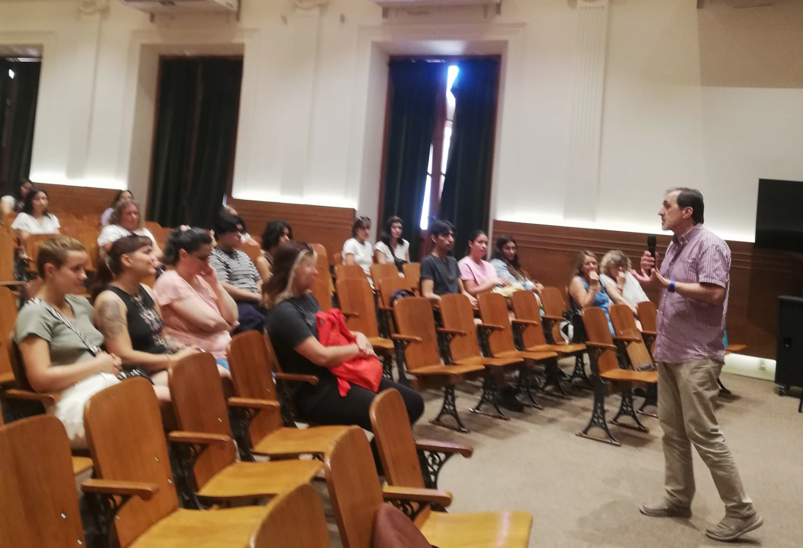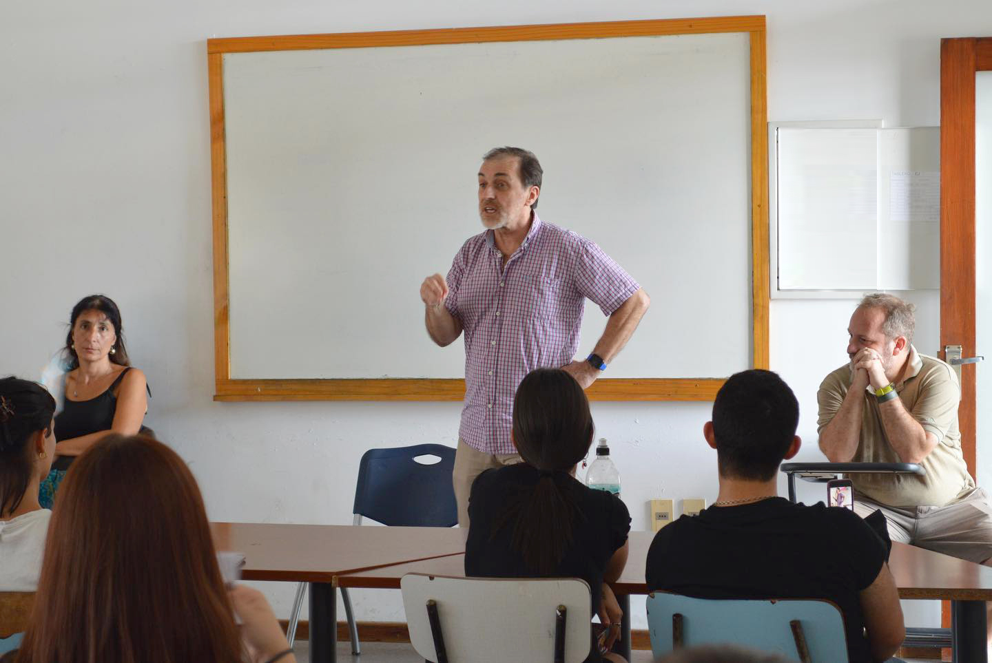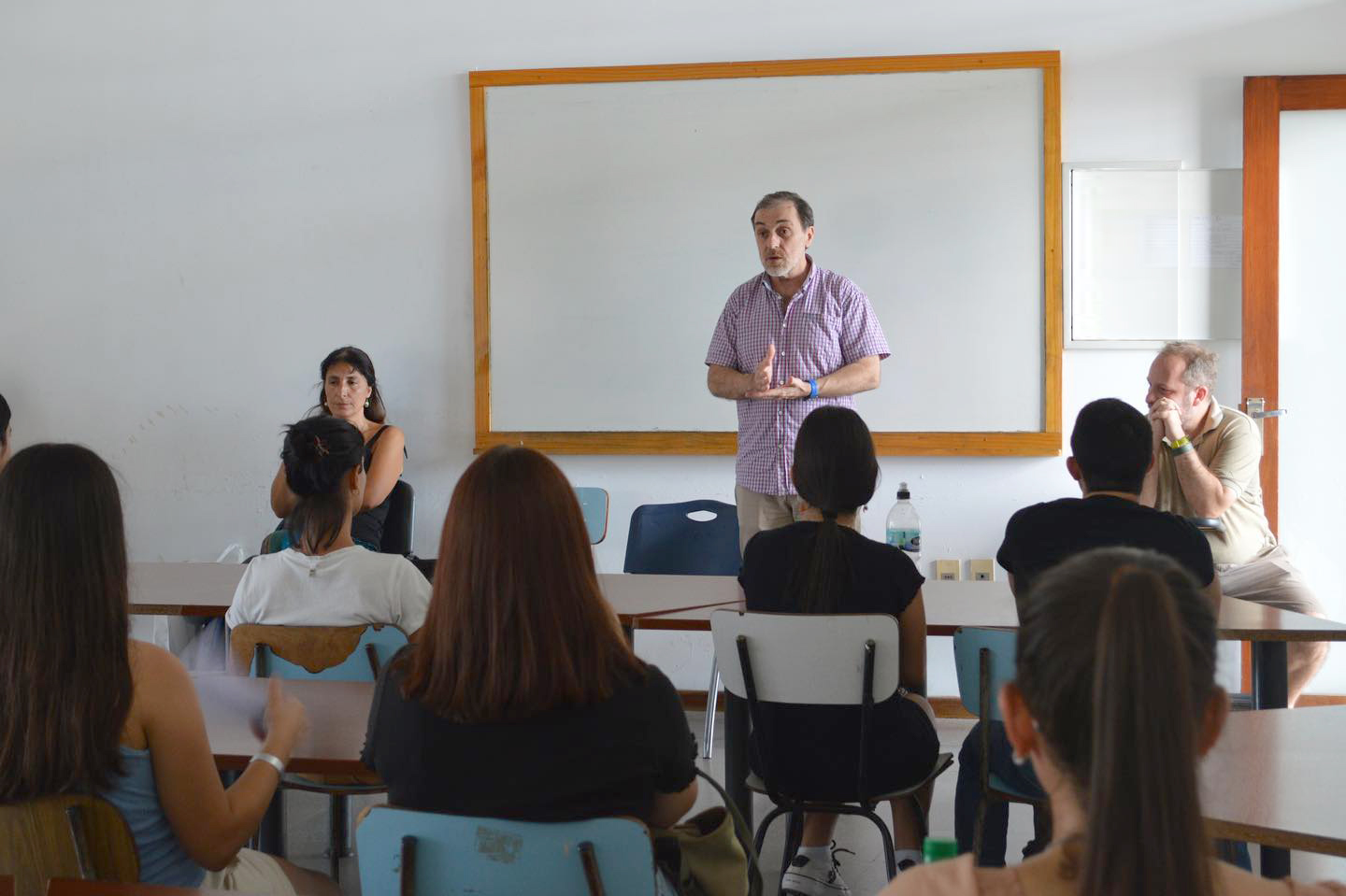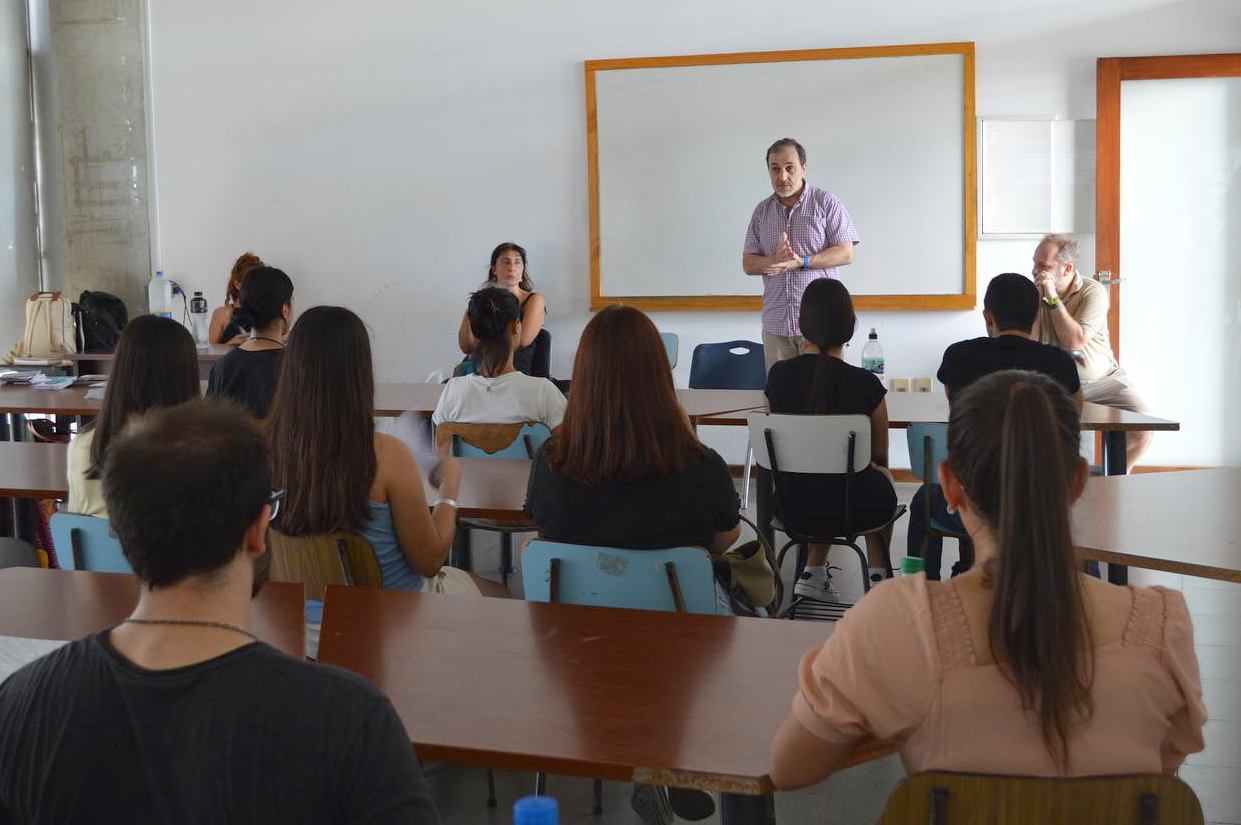 Junto con el decano, participaron Ana Luz Protesoni (Directora de la Licenciatura), Cecilia Madriaga (integrante del equipo de Dirección de la Licenciatura), Luciana Chiavone (coordinadora del Programa de Renovación de la Enseñanza – Proren) y las estudiantes Clara Coelho y Martina Rodríguez.
