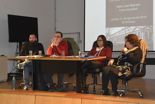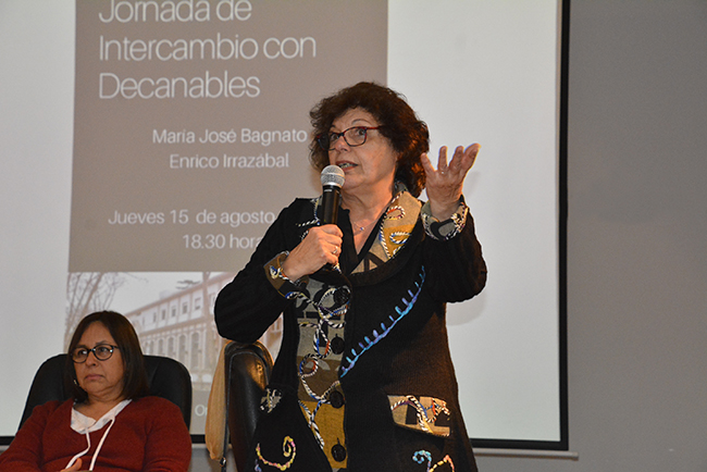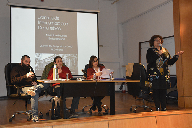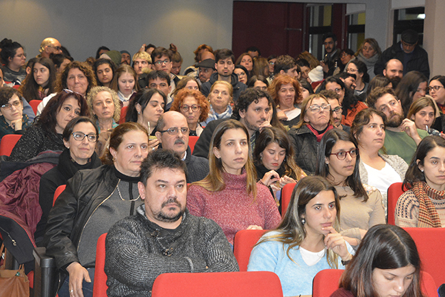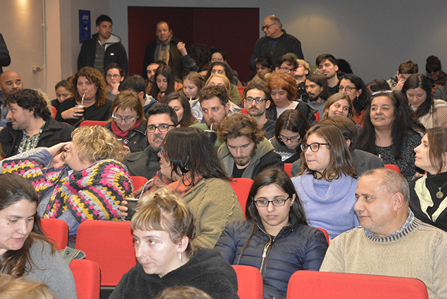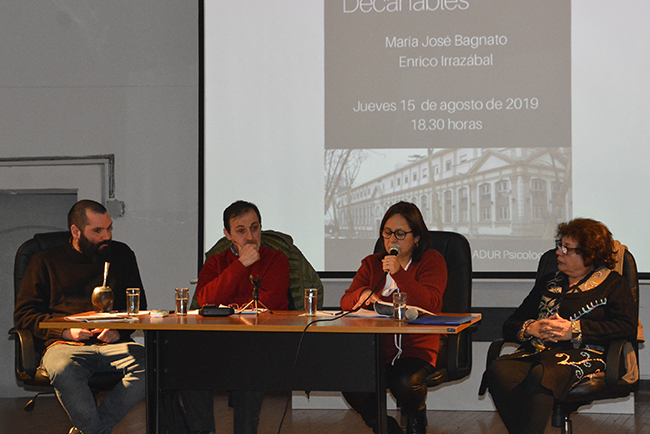 Tras las palabras de bienvenida de Mag. Sylvia Montañez Fierro y Mag. Rodrigo Vaccotti (Comisión Directiva de ADUR Psicología), la Dra. María José Bagnato (actual Decana de la Facultad) y el Mag. Enrico Irrazábal expusieron sus propuestas de trabajo para el próximo período y contestaron las preguntas del público.