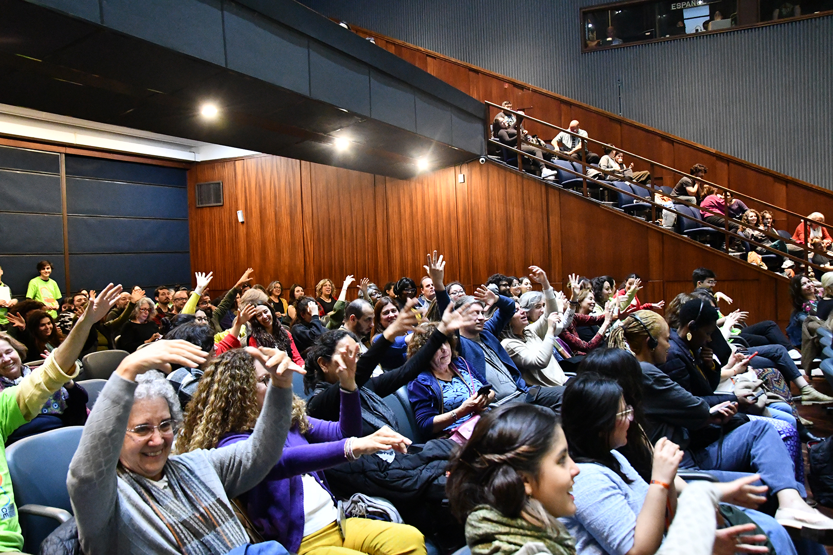 Las docentes también destacaron el trabajo de estudiantes, quienes integraron el equipo organizador de la Conferencia-Encuentro. “Así como pensábamos que no podíamos hacer una conferencia alejada de la extensión universitaria, era imposible realizarla sin la participación de los y las estudiantes, pero desde el involucramiento mismo, en procesos que fueran formativos: desde el diseño de la identidad gráfica hecha por estudiantes de la Licenciatura de Diseño y Comunicación Visual de FADU, la participación de estudiantes de Psicología en diversos grupos de trabajo de la organización y realizando un registro cartográfico, hasta estudiantes de Traductorado Público de la Facultad de Derecho y de interpretación de lengua de señas de la Facultad de Humanidades, todo lo cual implicó un trabajo interdisciplinario”, comentaron.