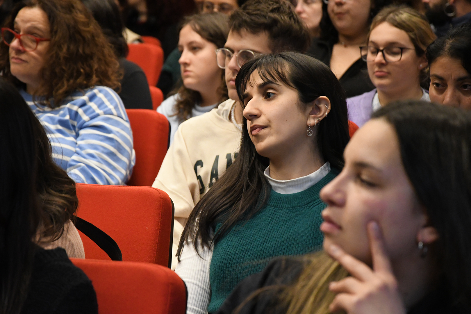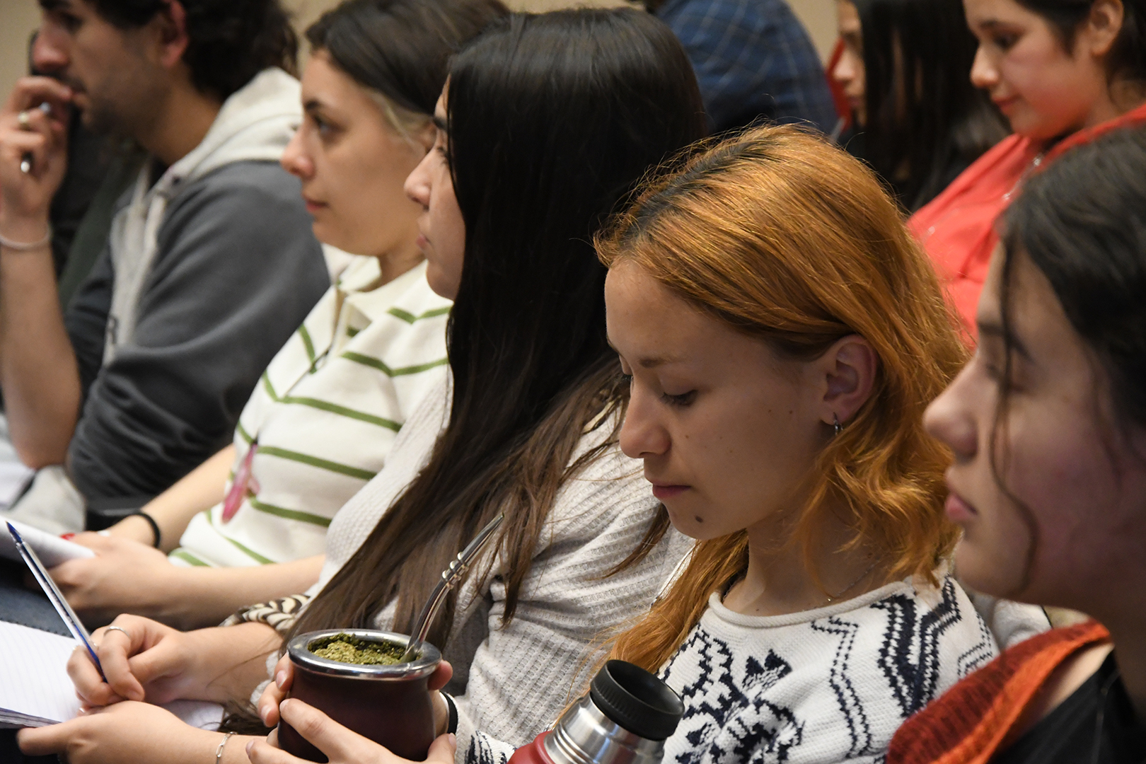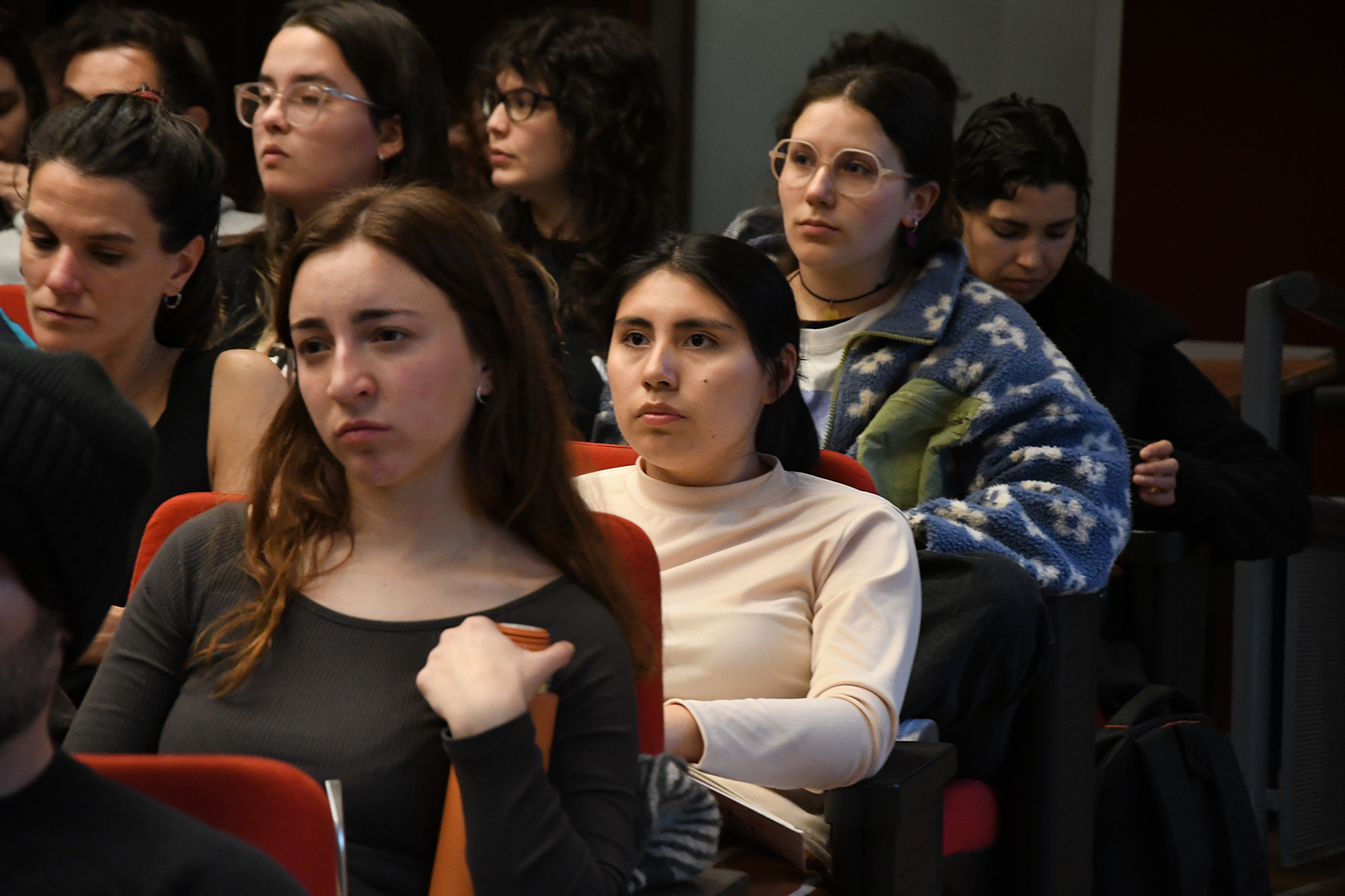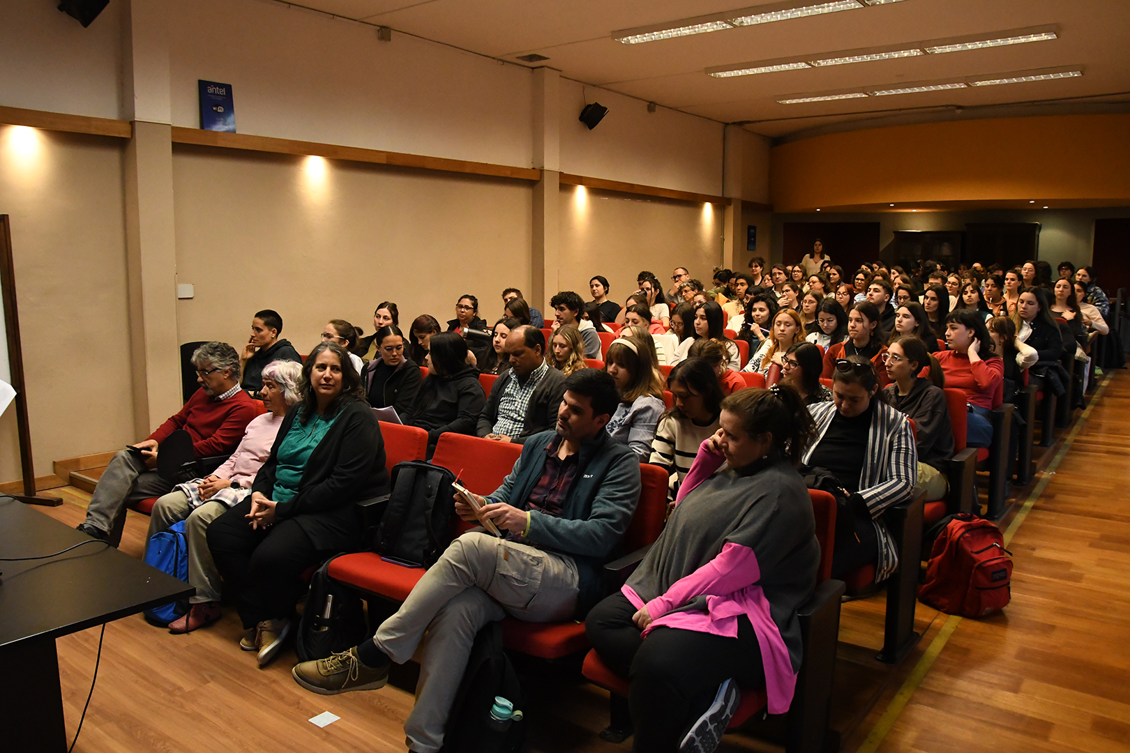 En un salón de actos Élida Tuana, la doctora en Psicología argentina, Claudia Bang, ofreció la conferencia Abordajes comunitarios en salud mental: la potencia de lo colectivo hoy, invitada por el Programa Practicantado en Psicología organizado en convenio por la Facultad de Psicología de la Universidad de la República y la Intendencia de Montevideo.