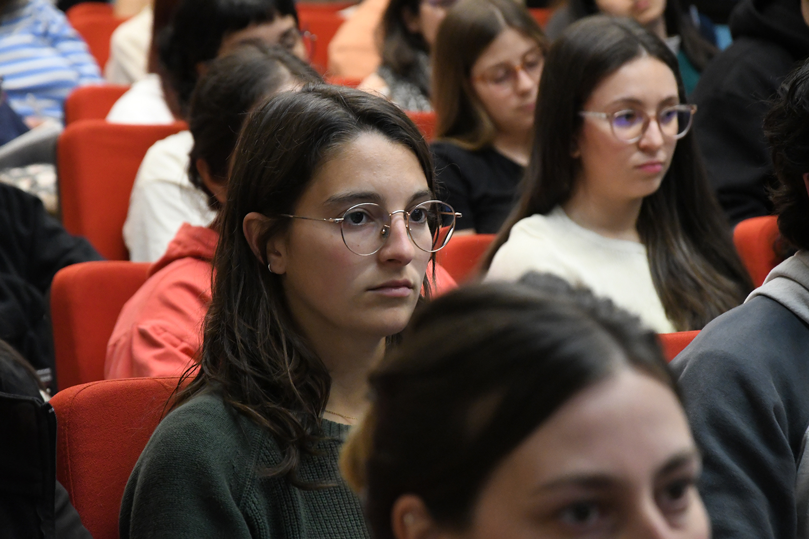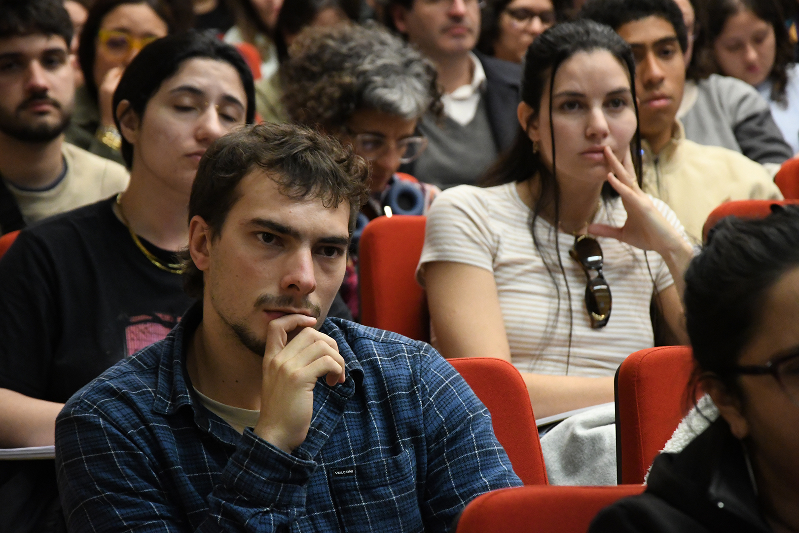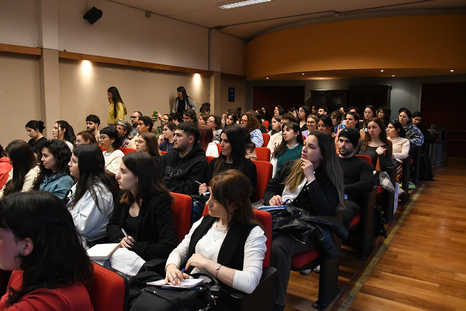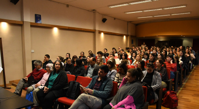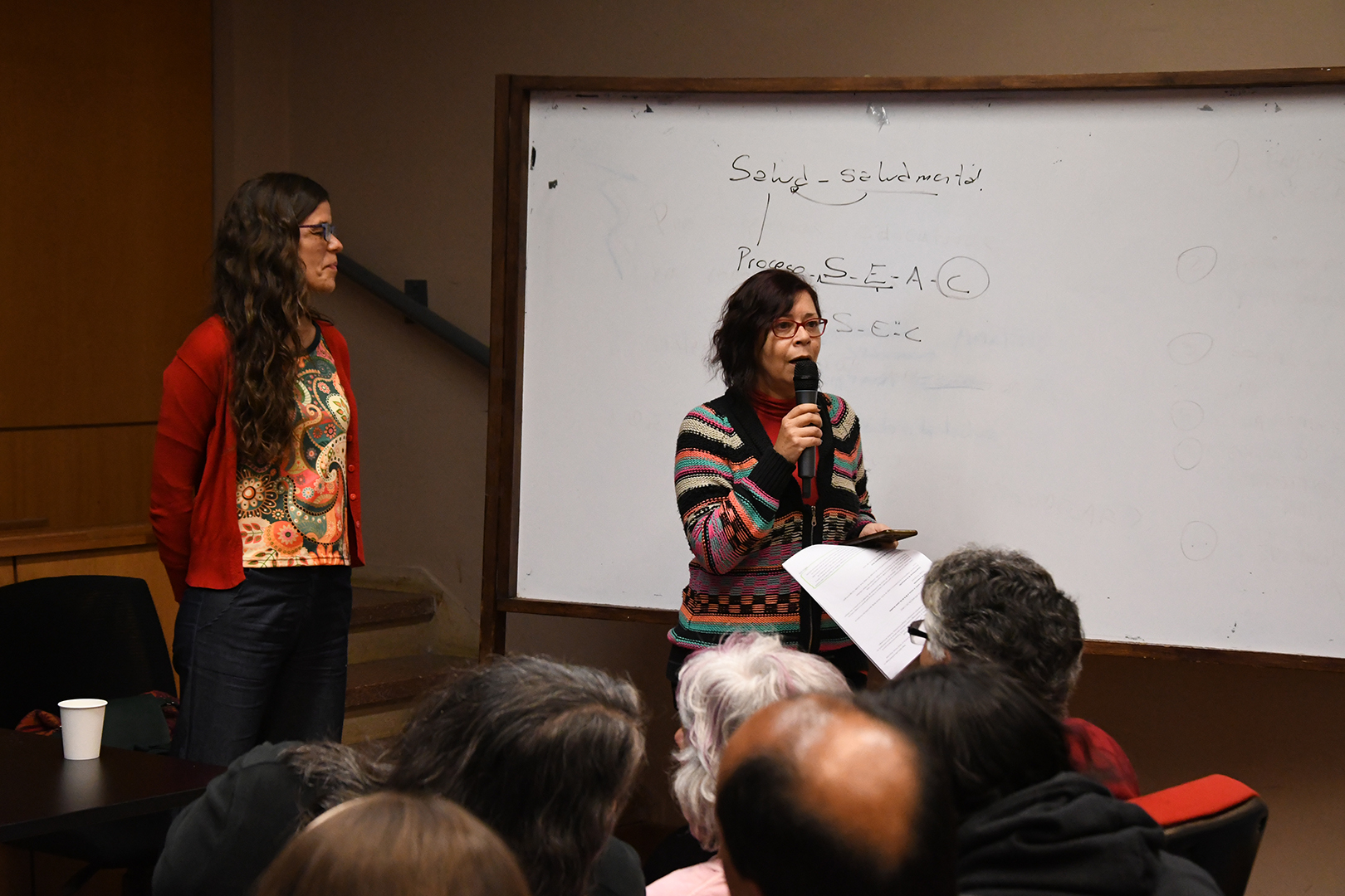 En un salón de actos Élida Tuana, la doctora en Psicología argentina, Claudia Bang, ofreció la conferencia Abordajes comunitarios en salud mental: la potencia de lo colectivo hoy, invitada por el Programa Practicantado en Psicología organizado en convenio por la Facultad de Psicología de la Universidad de la República y la Intendencia de Montevideo.