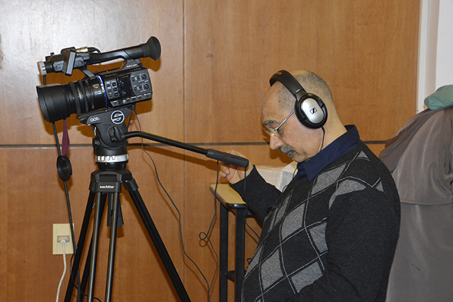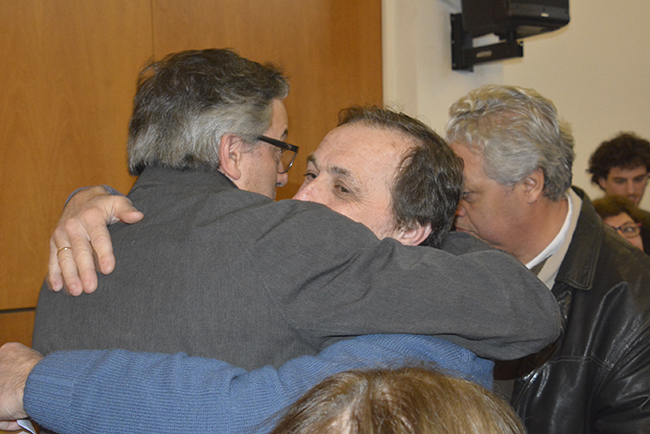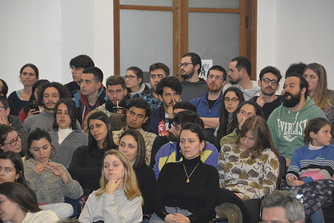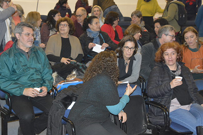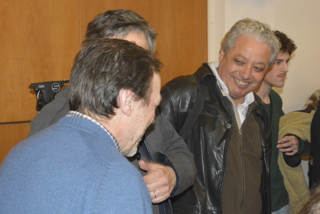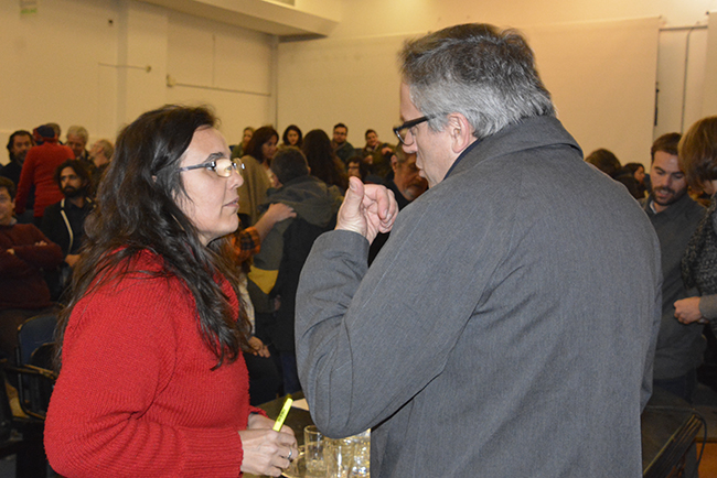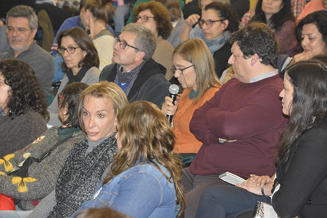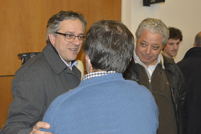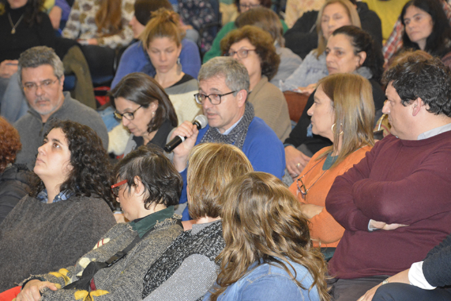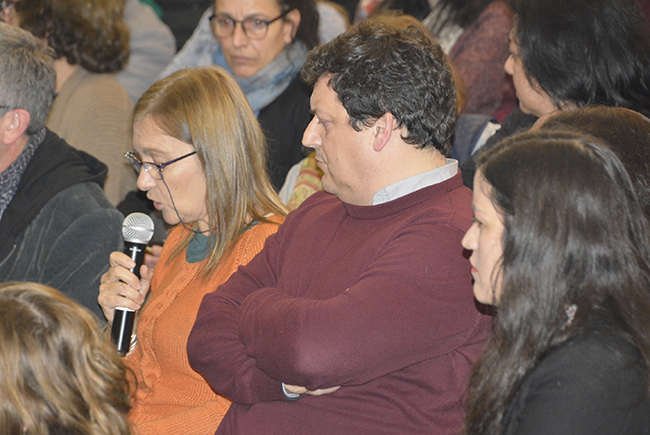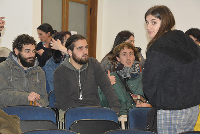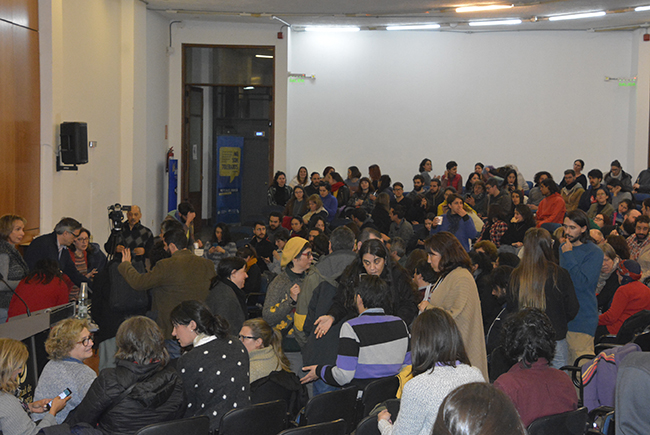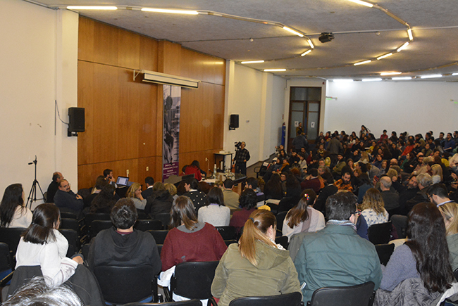 Luego de unos minutos de espera, los candidatos se hicieron presentes en el Aula y el profesor Irrazábal tomó la palabra para agradecer a las y los presentes.
