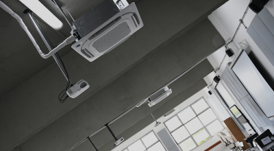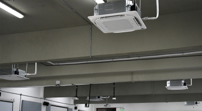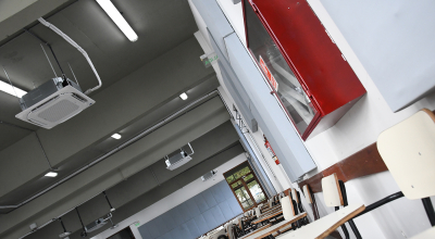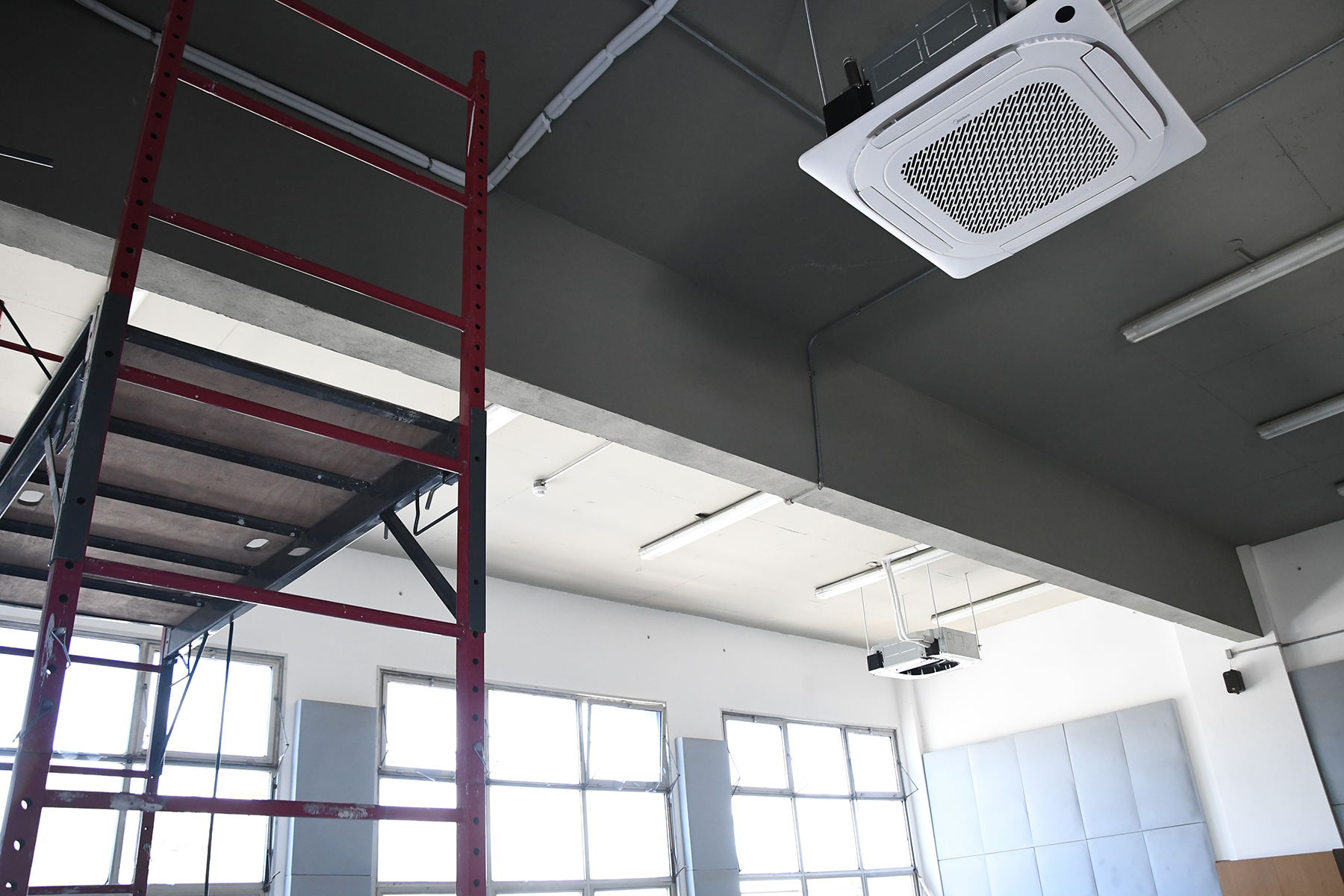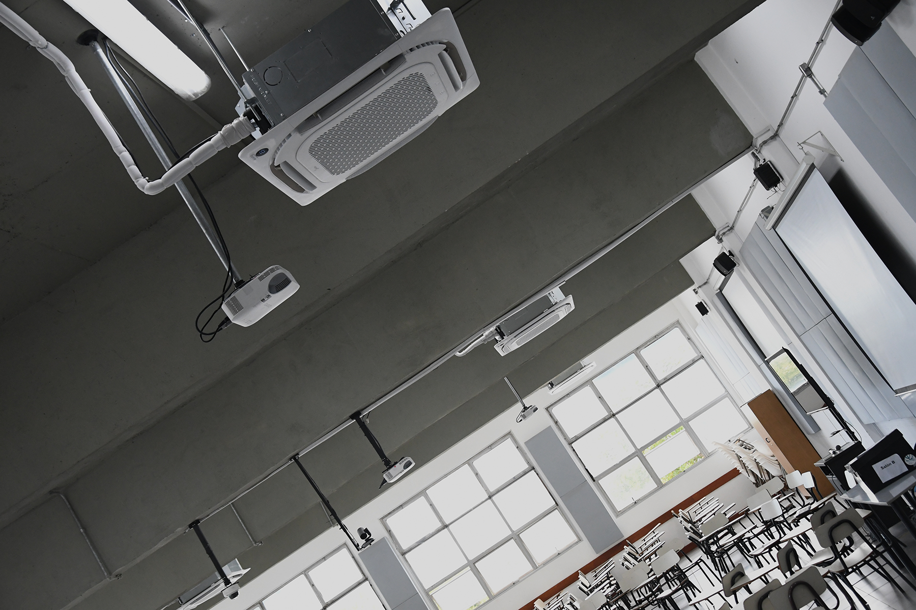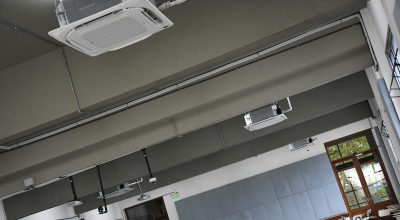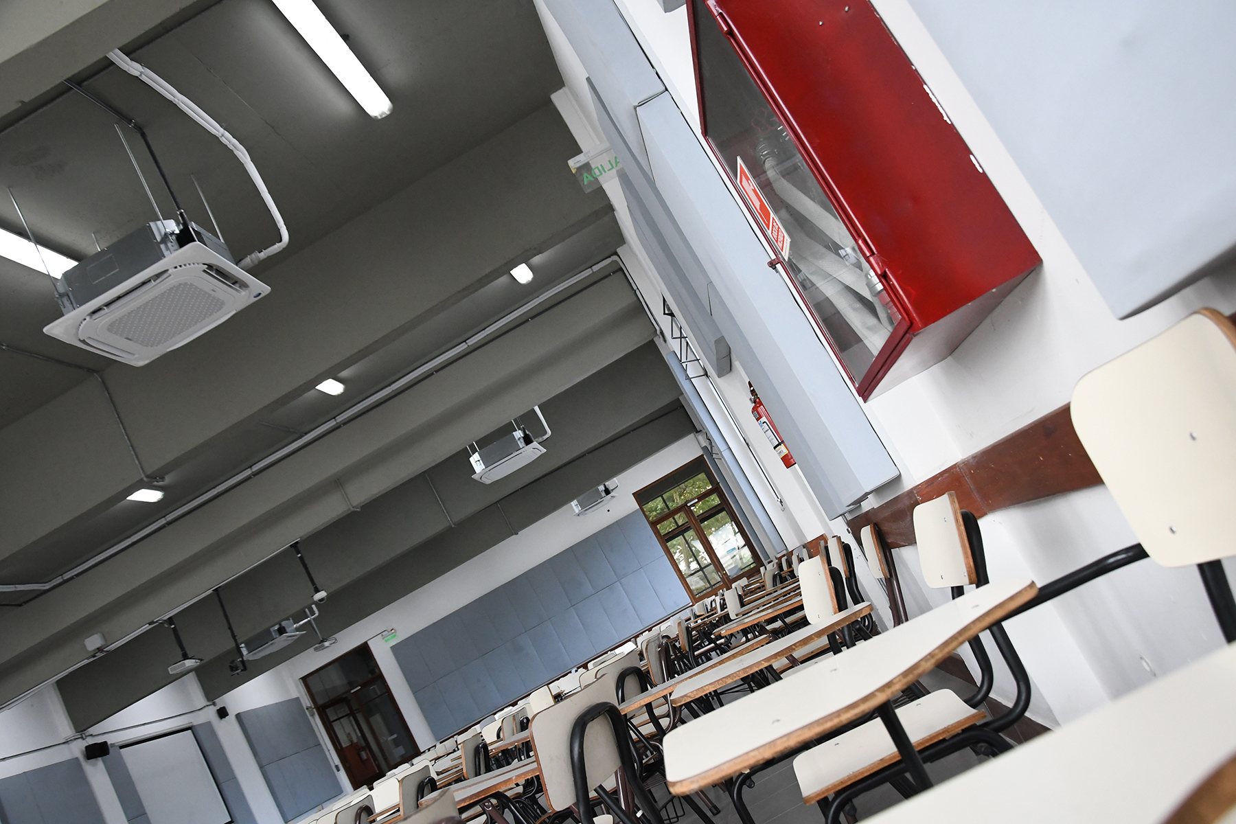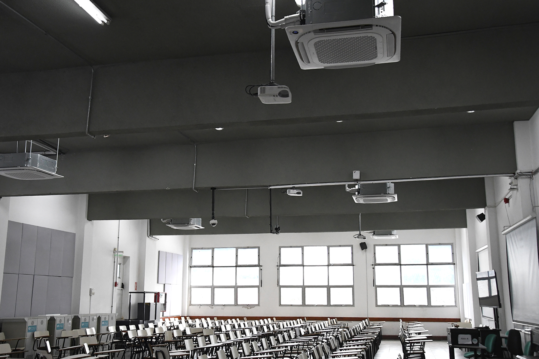 El trabajo comprendió la instalación de nuevos equipos de aire acondicionado del tipo mini split casette, con el objetivo de asegurar una regulación efectiva de la temperatura y proporcionar un mayor confort térmico a estudiantes, docentes y participantes de las diversas actividades que allí se desarrollan. Sumado al acondicionamiento acústico realizado previamente en estos salones, esta intervención mejora sustancialmente la habitabilidad de los espacios.