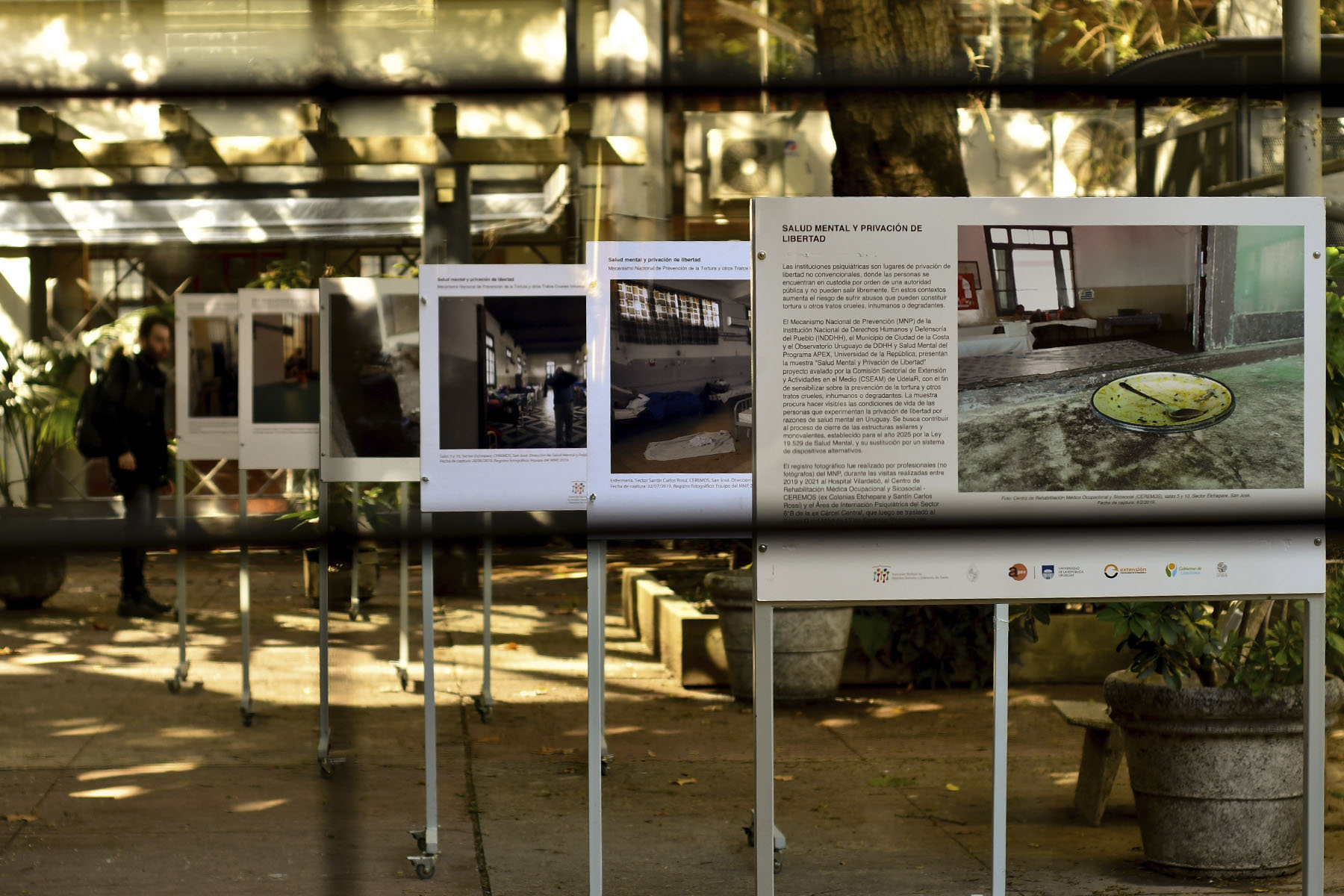 La muestra es producto del monitoreo de instituciones psiquiátricas llevado adelante por el Mecanismo Nacional de Prevención (MNP) de la Institución Nacional de Derechos Humanos y Defensoría del Pueblo (INDDHH). Esta institución, junto al Observatorio Uruguayo de Derechos Humanos y Salud Mental del Programa APEX de la Universidad de la República (Udelar) realizaron un fotoreportaje, compuesto por 20 placas con 19 fotografías tomadas entre los años 2019 y 2021 por profesionales del MNP durante las visitas a las instituciones públicas monitoreadas: el Hospital Vilardebó; los Centro de Rehabilitación Médico Ocupacional Psicosocial (Ceremos) (ex Colonia Etchepare); el área de internación psiquiátrica Sector 6º B de la ex Cárcel Central y el Sector D del Módulo 12 de la cárcel Santiago Vázquez (ex Comcar).