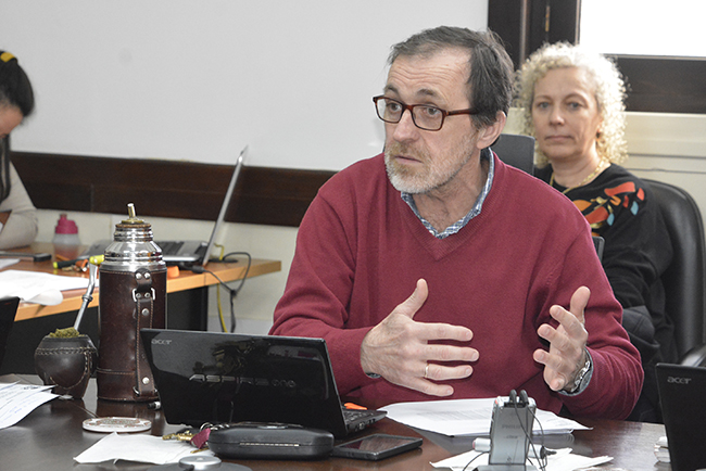 El Consejo del lunes 16 de setiembre a las 15 horas fue el primero presidido por Irrazábal, donde -luego de las formalidades de la sesión- representantes del orden docente, Centro de Estudiantes, egresados, Agrupación 1958 y la Coordinadora de Psicólogos del Uruguay dieron la bienvenida al nuevo decano.