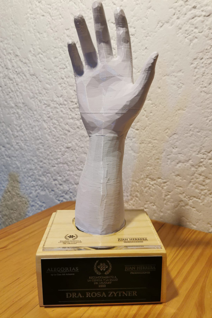 De la mano del director de SmartBiofarma, Fernando Antúñez, y del productor general del evento, Juan Herrera; Zytner recibió el premio representado con una mano de cerámica, el cual refleja el trabajo académico realizado por la docente en manera compartida con diversos actores de la Facultad.
