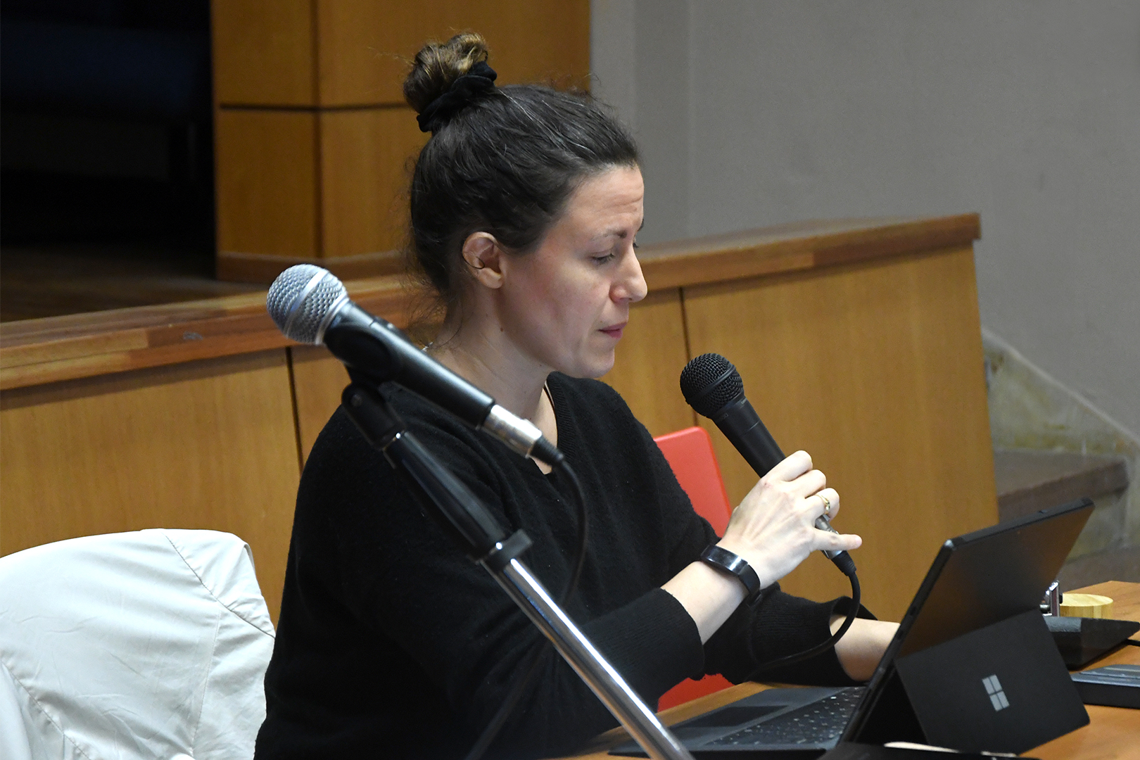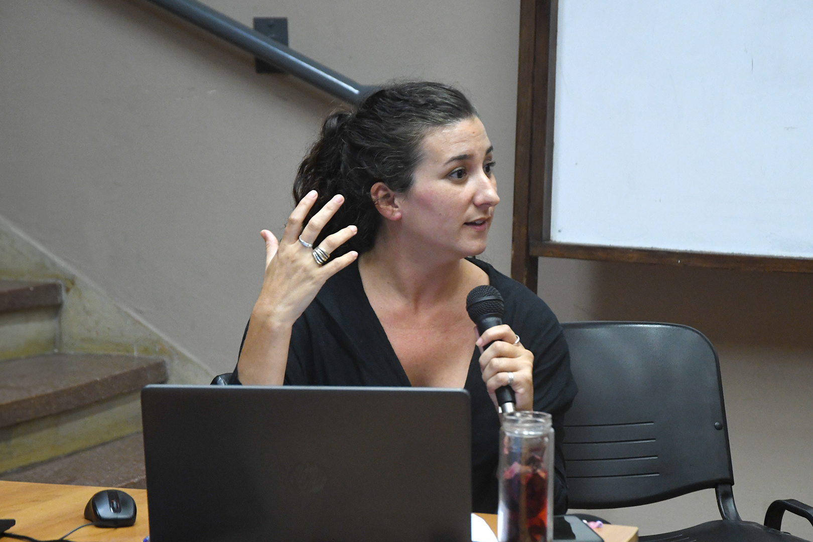 Mariana Leoni, integrante del equipo técnico de evaluación institucional y mejora continua de la Facultad de Psicología, presentó la jornada de intercambio para pensar en el Plan de Mejoras propuesto en mayo de 2023. La jornada fue la etapa final de una serie de reuniones que buscaron consolidar la propuesta mediante un proceso participativo y de puertas abiertas.