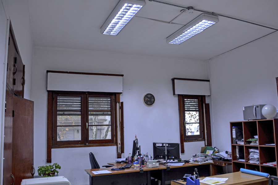 Por otro lado, en estos momentos se trabaja en la sustitución de las luminarias exteriores del Edificio Central de la Facultad. Asimismo, se realiza un reemplazo de las luminarias del Aula Magna “Juan Carlos Carrasco” y del Salón de Actos.