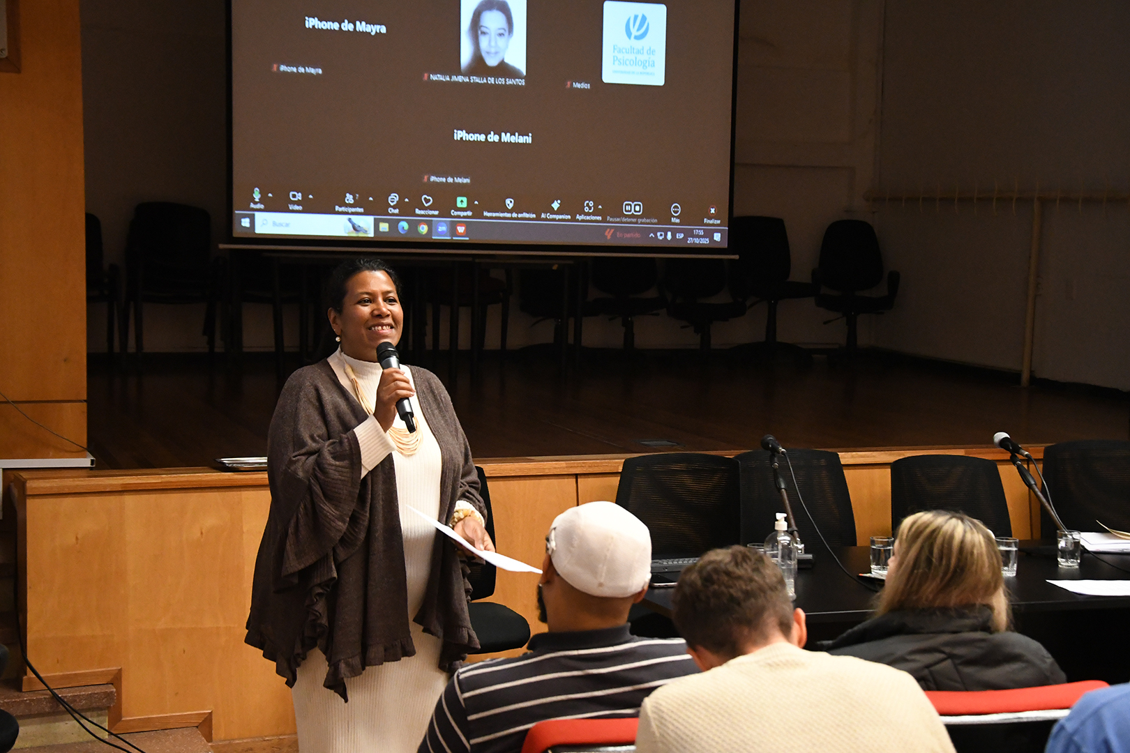 La apertura estuvo a cargo de Ana Karina Moreira, quien dio la bienvenida y presentó el ciclo En primera persona. Luego, Carolina Farías, directora del Instituto de Psicología de la Salud, abordó los compromisos institucionales frente al racismo epistémico y estructural en la Facultad. Asimismo, Adriana Peralta compartió su experiencia como integrante del SEADR.