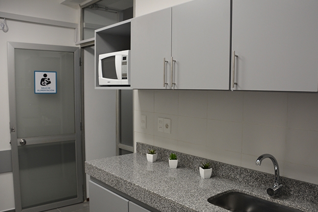 El espacio, denominado Sala de Alimentación, se enmarca en una política institucional de género que demuestra el compromiso de la Facultad con la responsabilidad en la armonización de la vida personal, familiar y laboral. Se constituye como un espacio amigable para la alimentación, la extracción manual de leche y su conservación, que ha sido equipado con poltronas reclinables, almohadones para la lactancia, heladera con freezer, microondas y cambiador.