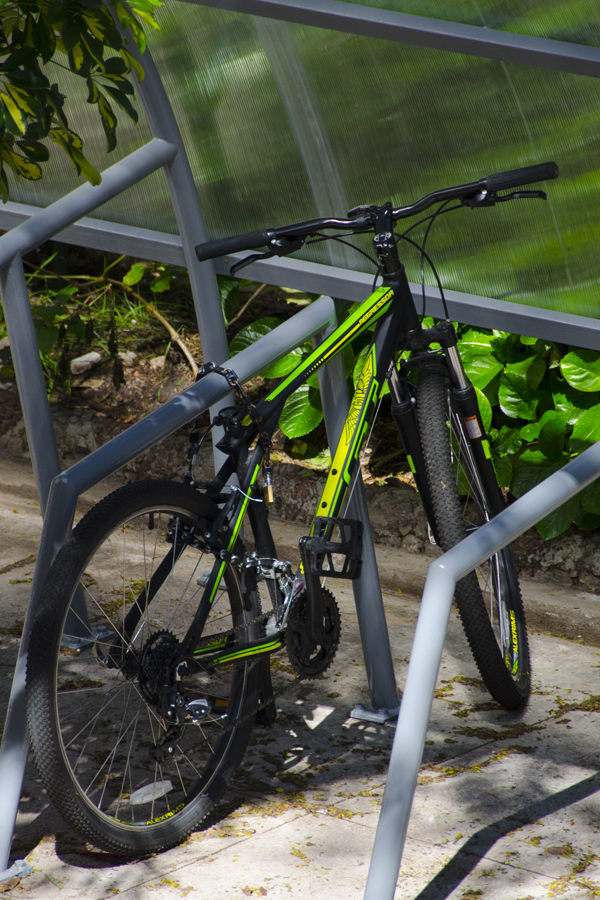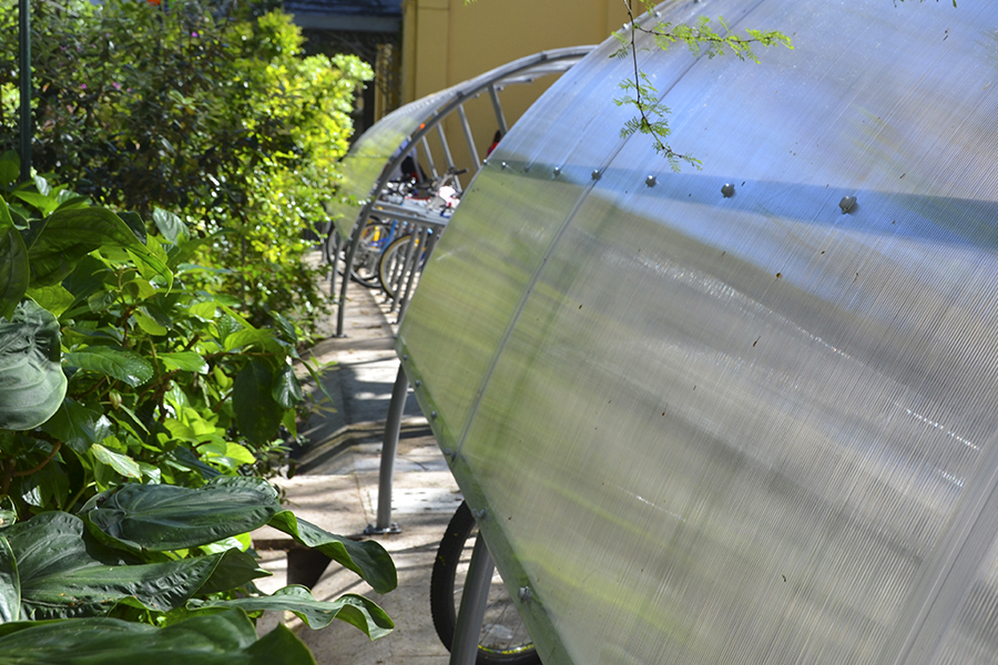 Su diseño original específicamente realizado por el Arq. Jorge Pagani de la Dirección General de Arquitectura y la Arq. Cecilia Ferrari de la Facultad de Psicología, permite colocar una cantidad importante de bicicletas (36), remplazando así otros espacios que se utilizaban con dicho fin.
