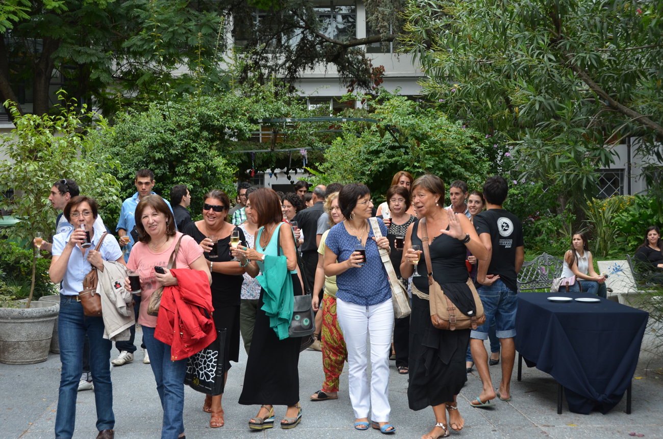 Una torta, velas y fotografías expuestas en el patio, fueron el marco que recibió a los presentes para compartir la música de Cuareim 1080, baile y un brindis final.