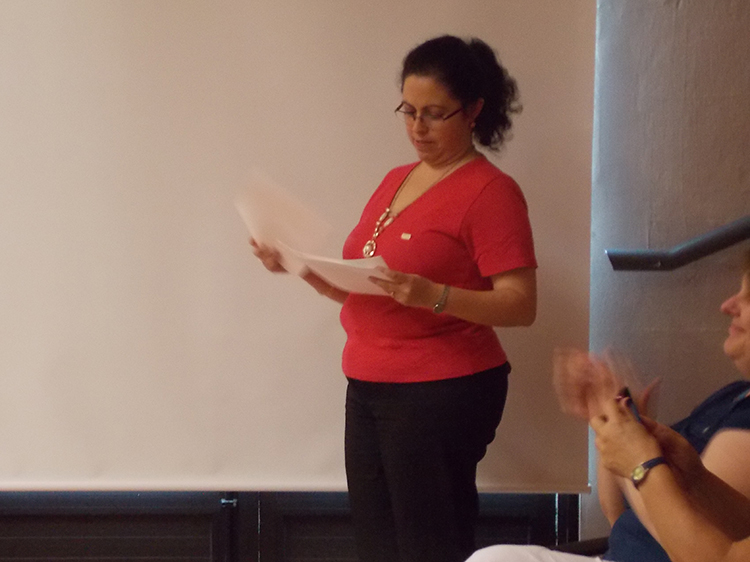 Luego de la entrega de certificados por parte de la Jefa de Bedelía de Posgrados, Beatriz Facal, tomó la palabra la Lic. Mariana Alberti como representante de los/as egresados/as.