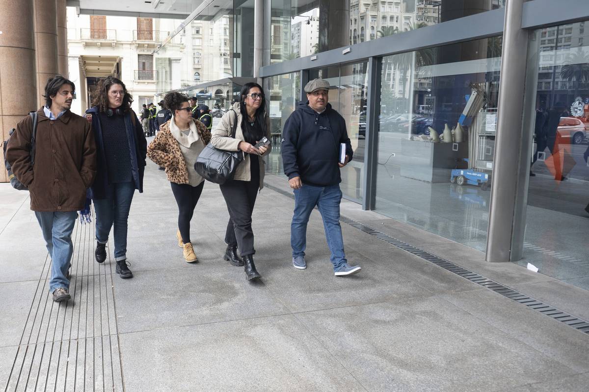 Durante más de una hora y media el clima frío y ventoso no frenó a estudiantes, docentes y funcionarios técnicos, administrativos y de servicios (TAS) de la Udelar, que se concentraron en la Plaza Independencia a esperar a la delegación que ingresó a la sede de Presidencia de la República. Cantos, carteles y una performance artística de estudiantes fueron parte de la espera. Además, predominaban las banderas de ADUR, ya que, justamente, sus afiliados se encontraban de paro y las distintas filiales del sindicato convocaron especialmente a la concentración.