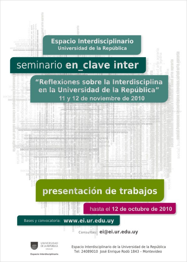 Trabajar en clave interdisciplinaria resulta una de las instancias más productivas e inspiradoras del desarrollo académico, demanda de una amplia participación en ámbitos y formatos diversos que potencien la comunicación entre los grupos de trabajo. Con este objetivo el Espacio Interdisciplinario (EI) propuso la construcción de un ámbito de intercambio el Seminario En_Clave Inter.